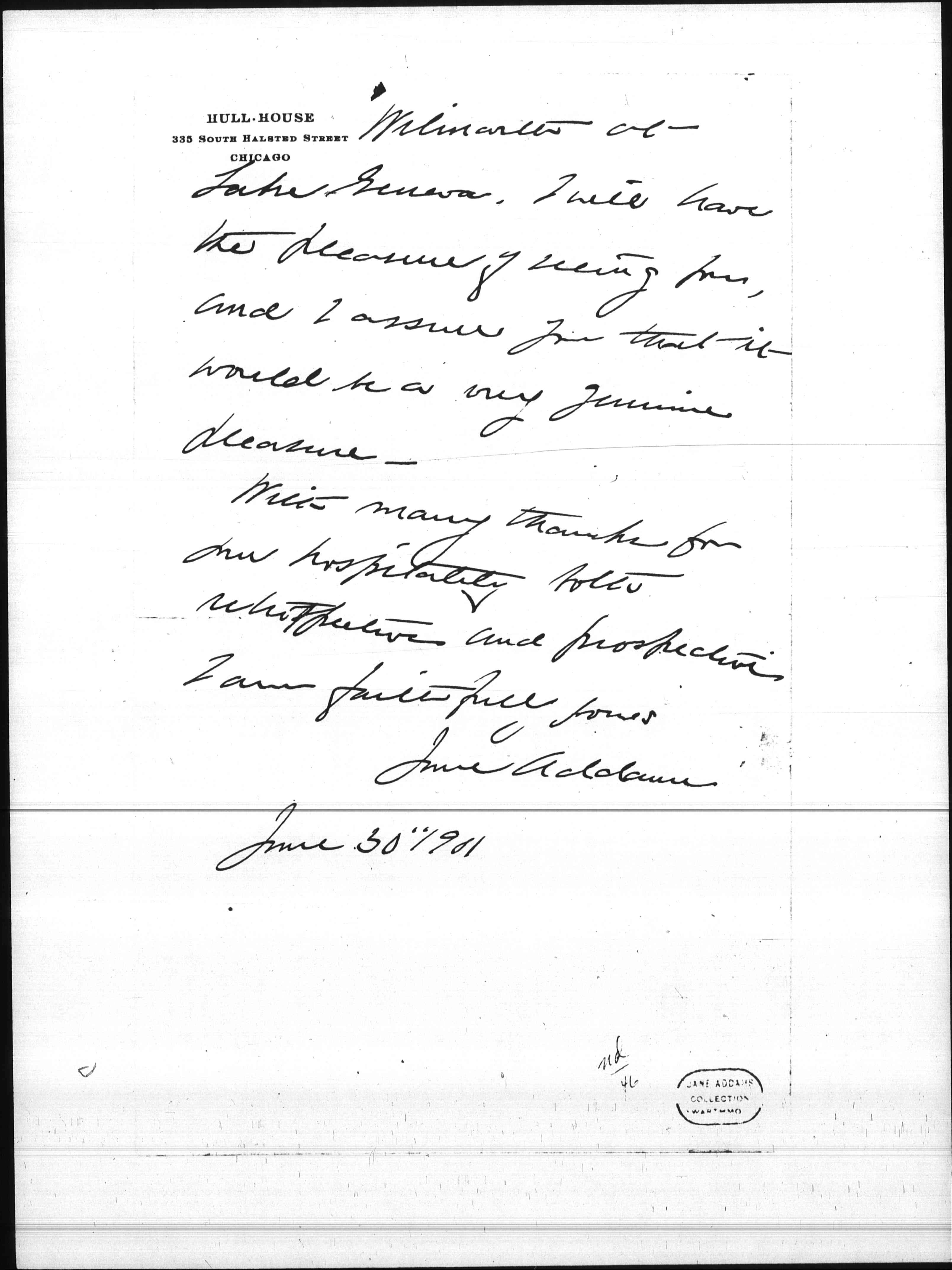 Perhaps later in the summer when I visit Mrs Wilmarth at Lake Geneva. I will have pleasure of seeing you, and I assure you that it would be a very genuine pleasure.