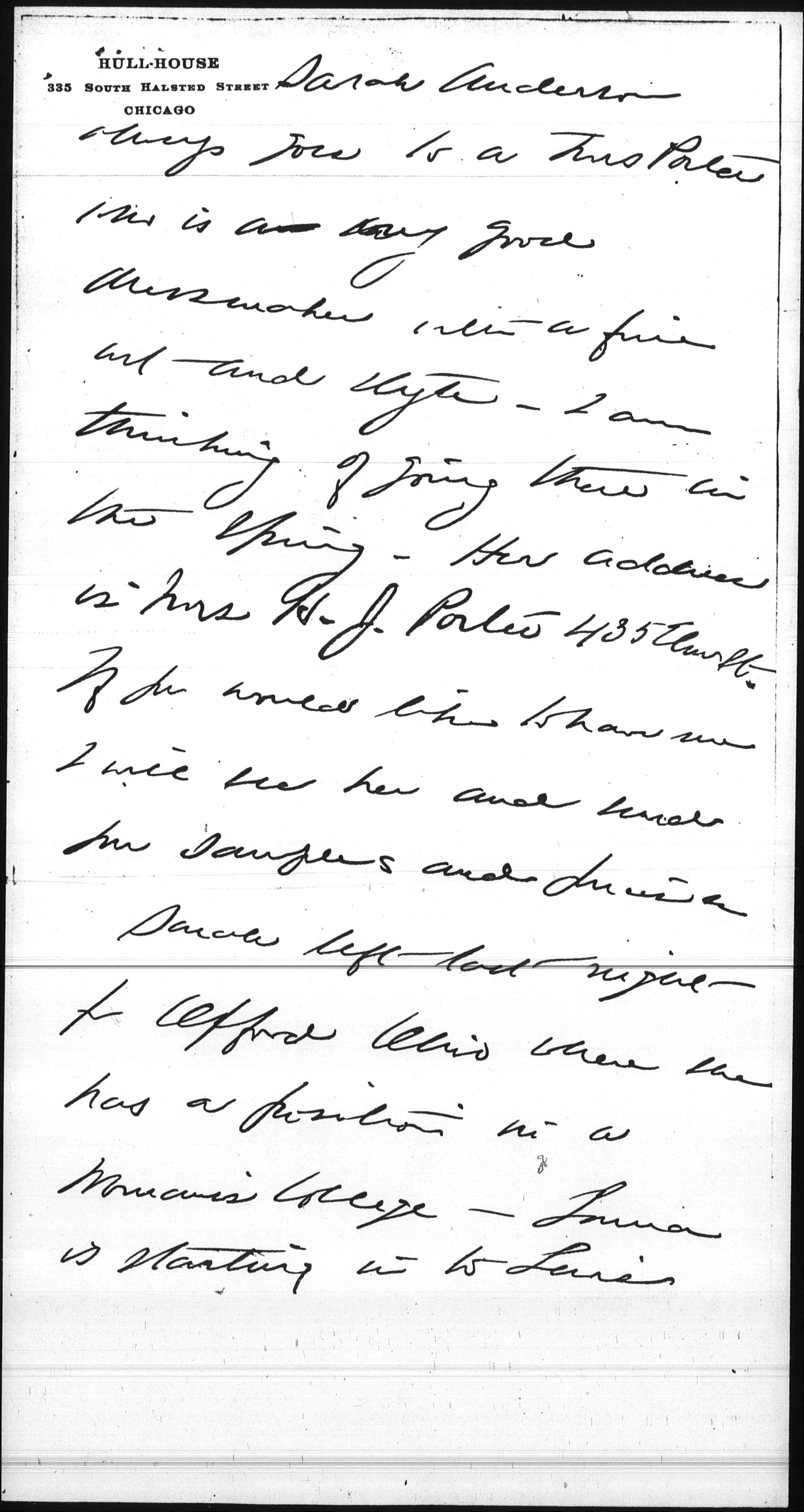 Sarah left last night for Oxford Ohio where she has a position in a Woman's College–-Laura is starting in to [Lewis] [page 3] Institute and is going to take the Domestic science training-–the three months course probably.