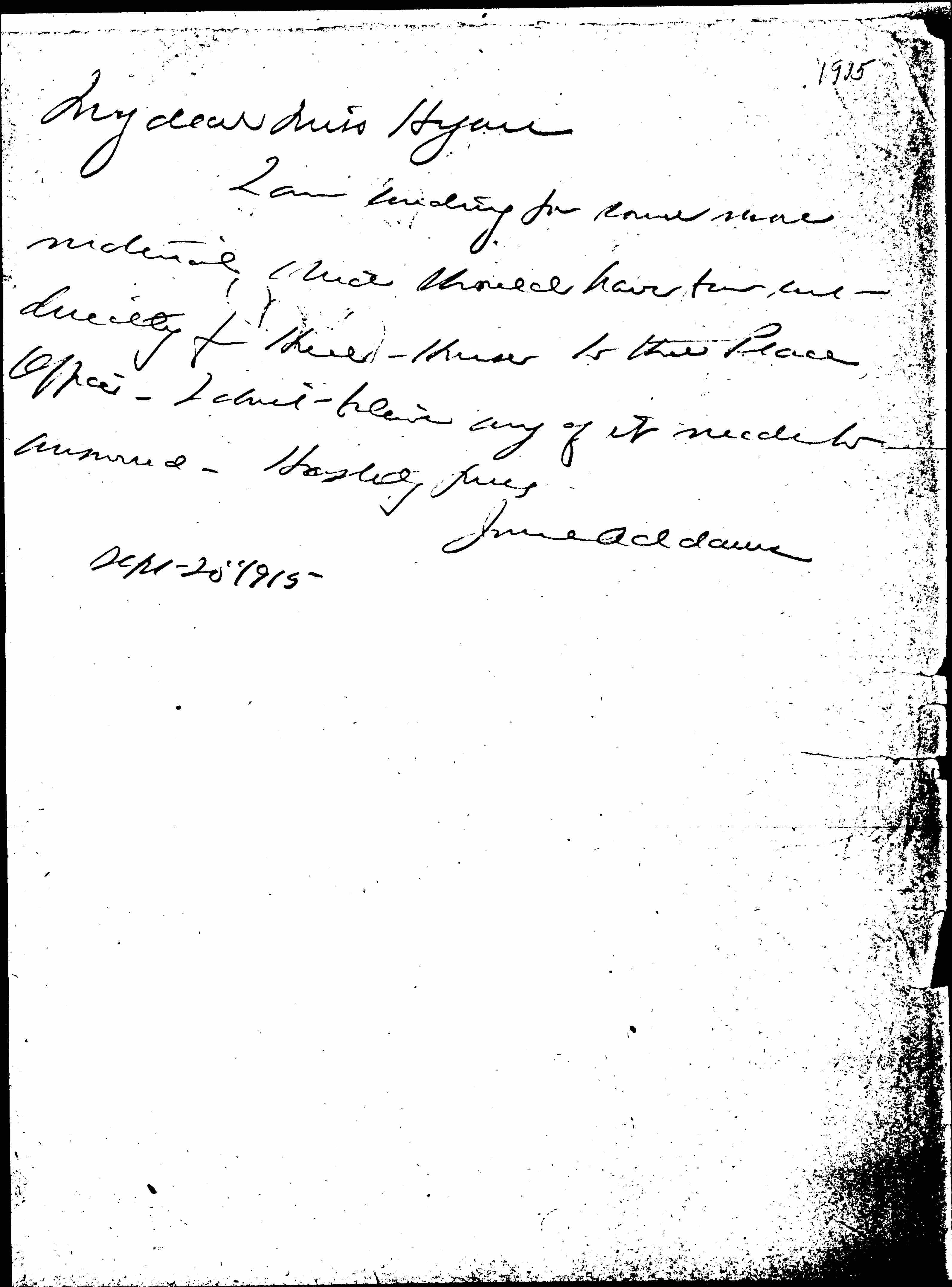 I am sending you some more material which should have been sent directly from Hull-House to the Peace Office. I don't believe any of it needs answered. Hastily yours