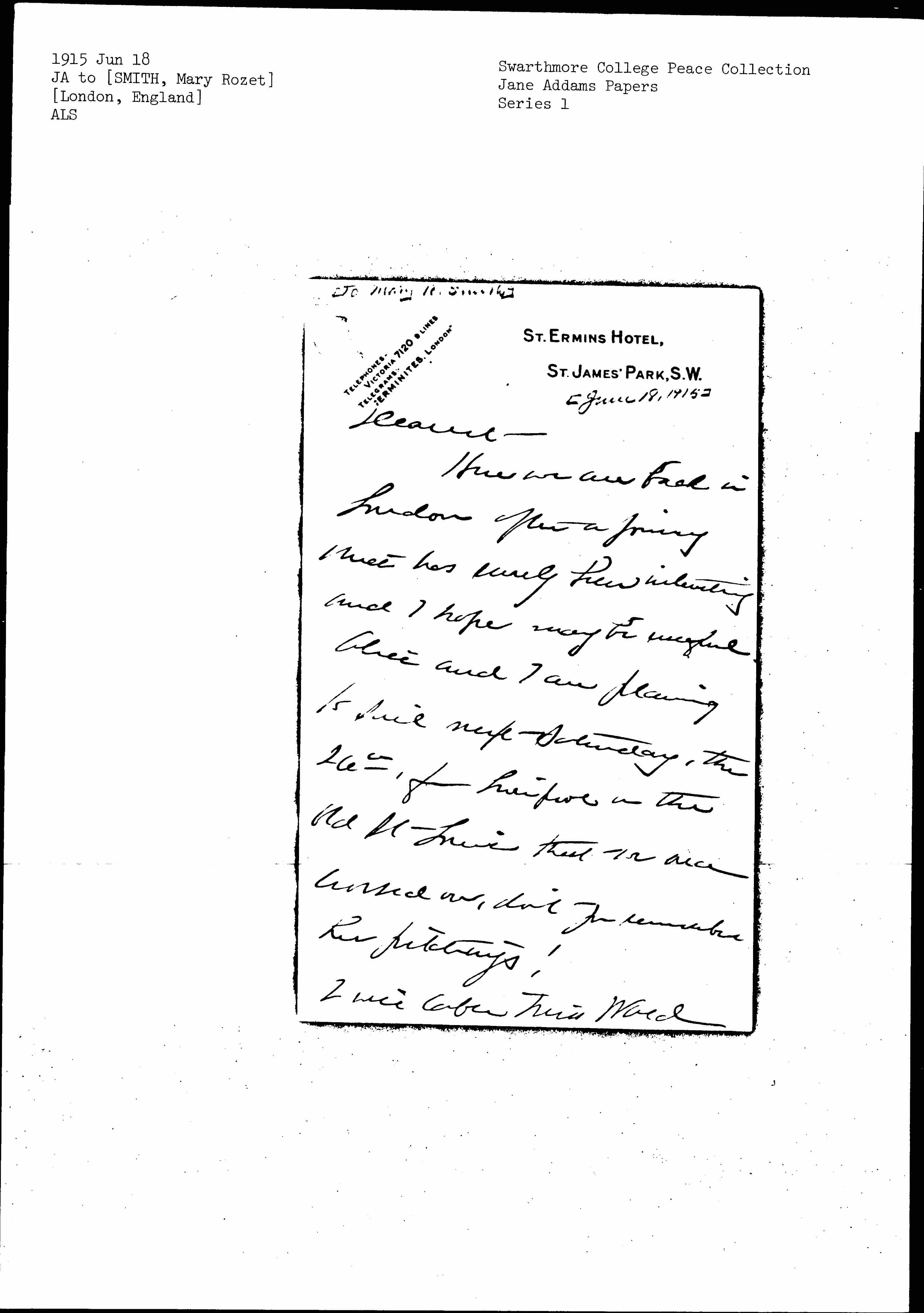 Here we are back in London after a journey that has surely been interesting and I hope may be useful. Alice and I are planning to sail next Saturday, the 26th, from Liverpool on the old St Louis that we once crossed on, don't you remember her pitchings!