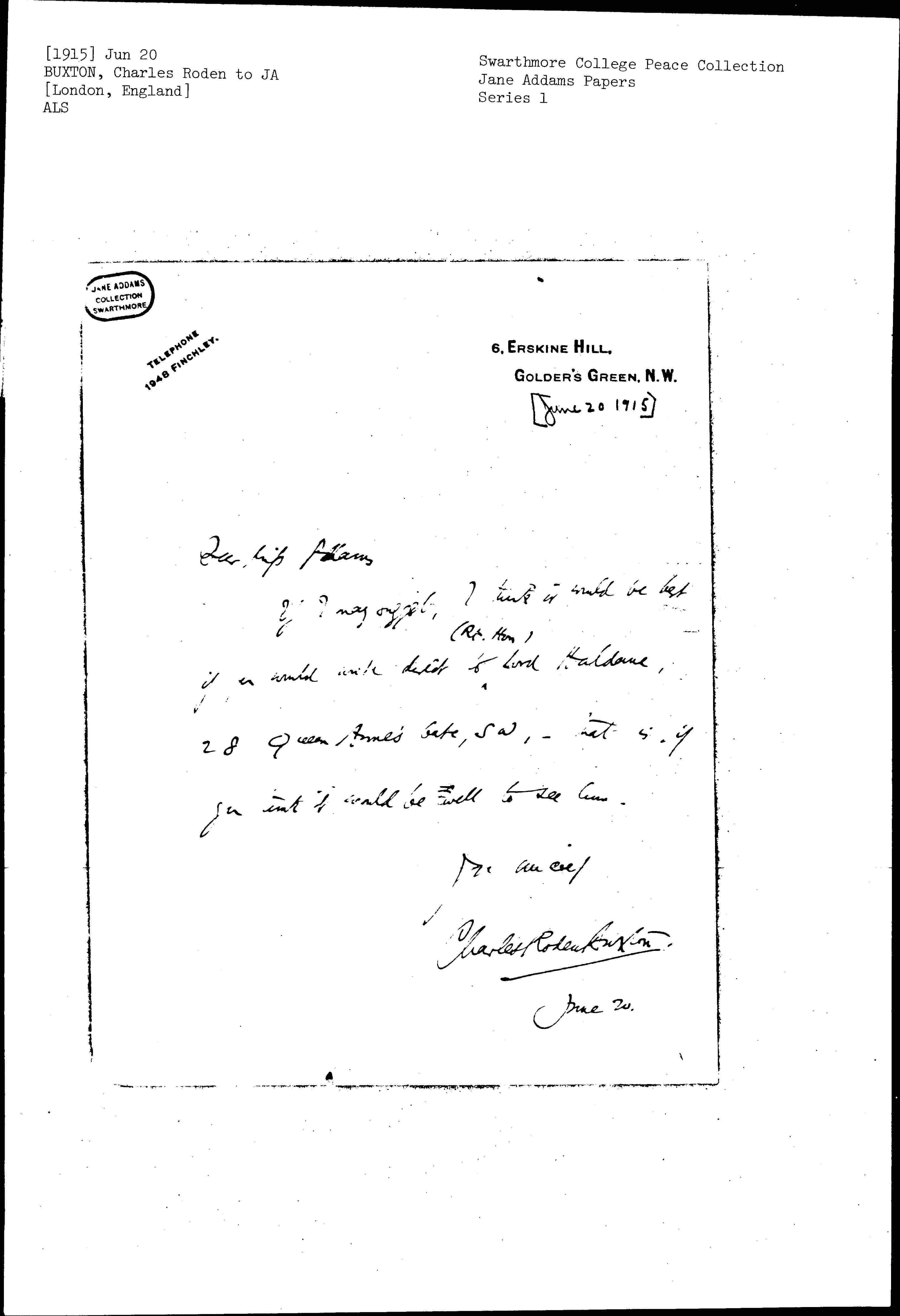 Dear [Miss] Addams