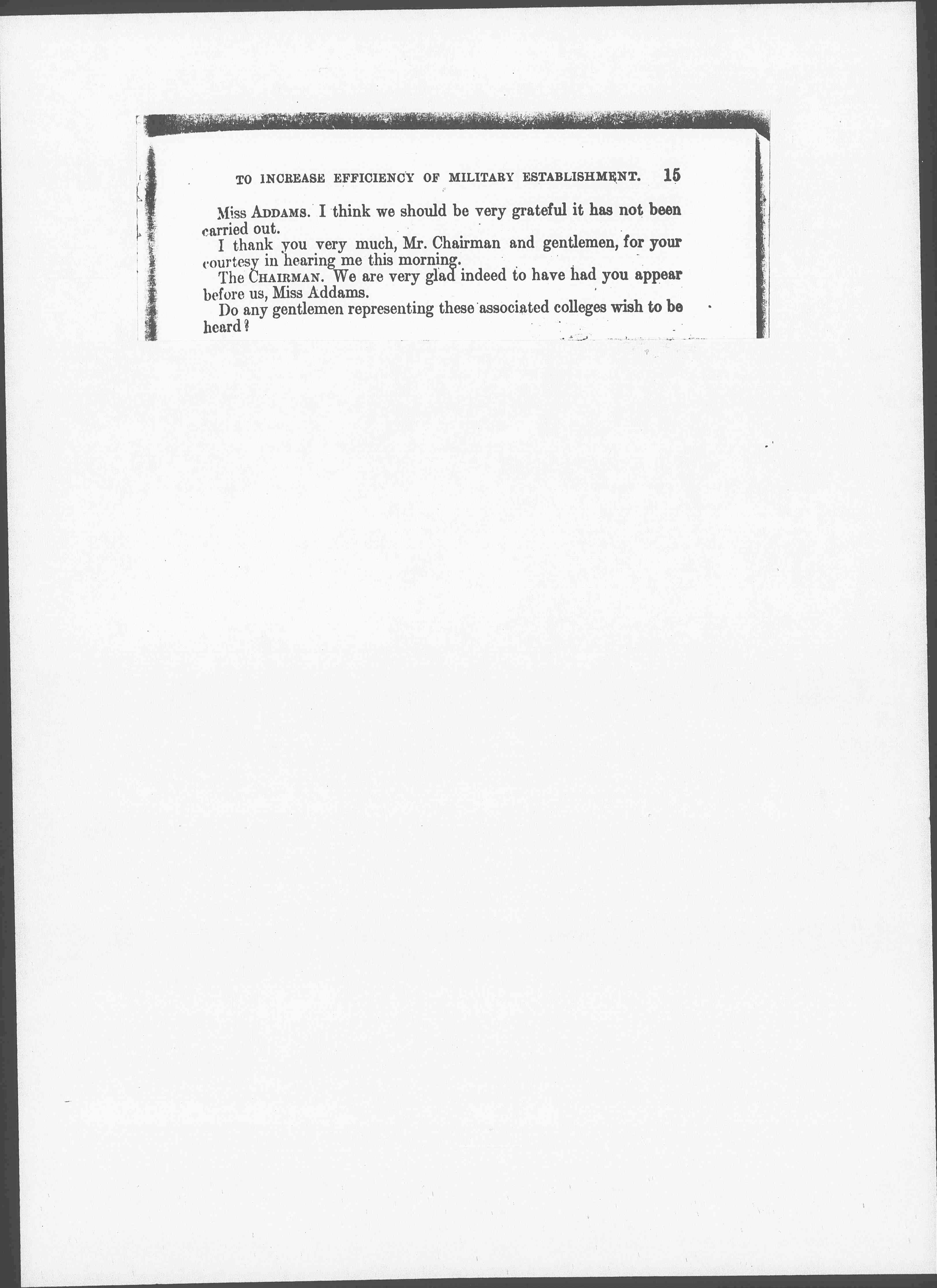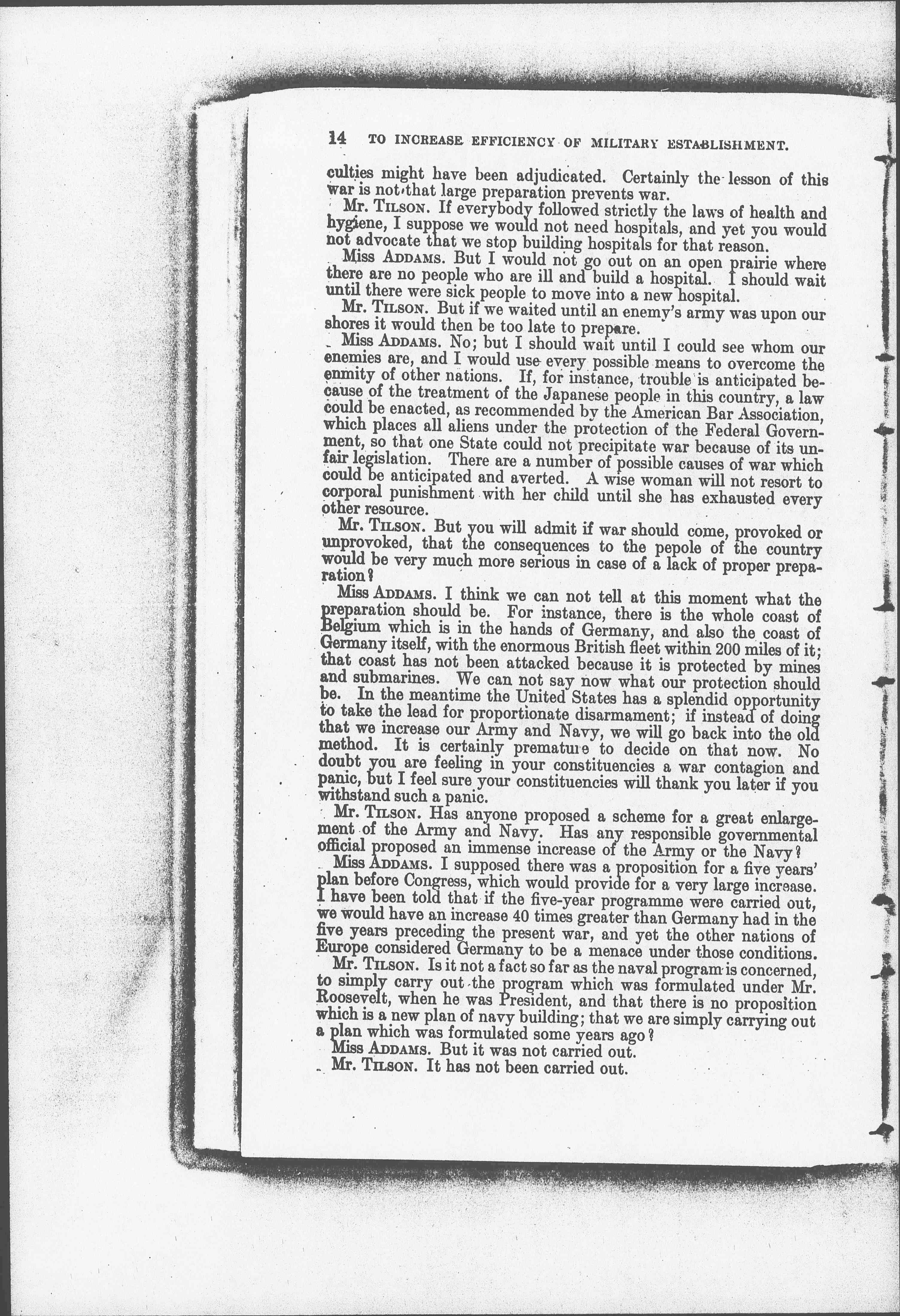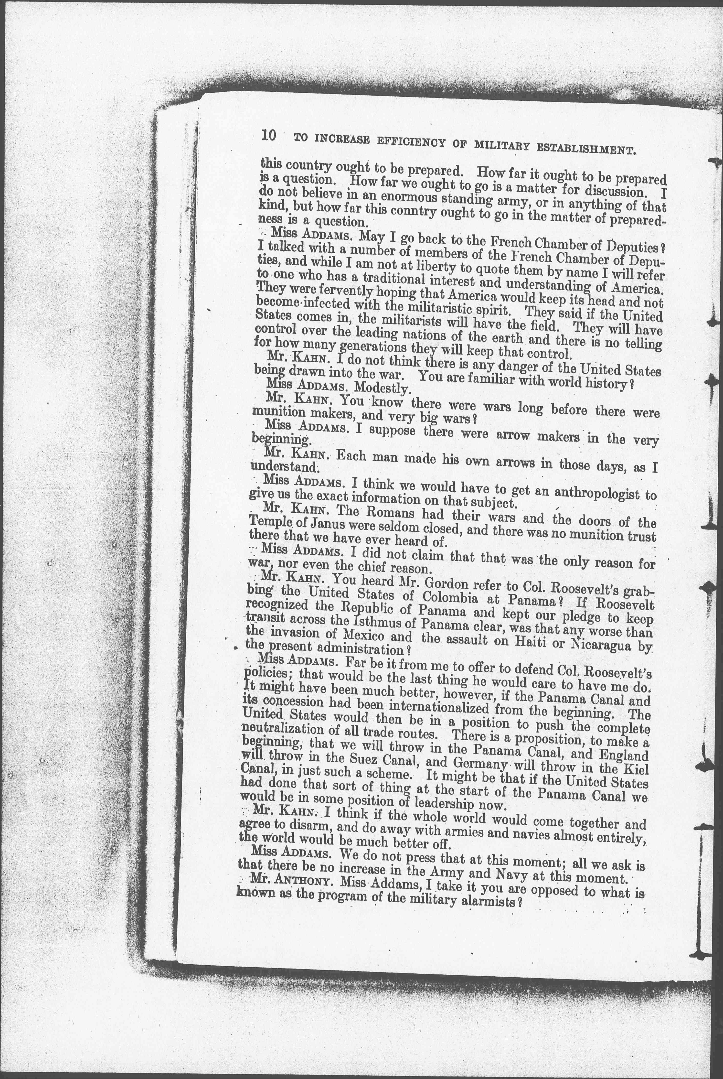 Mr. ANTHONY. Miss Addams, I take it you are opposed to what is known as the program of the military alarmists? [page 9]