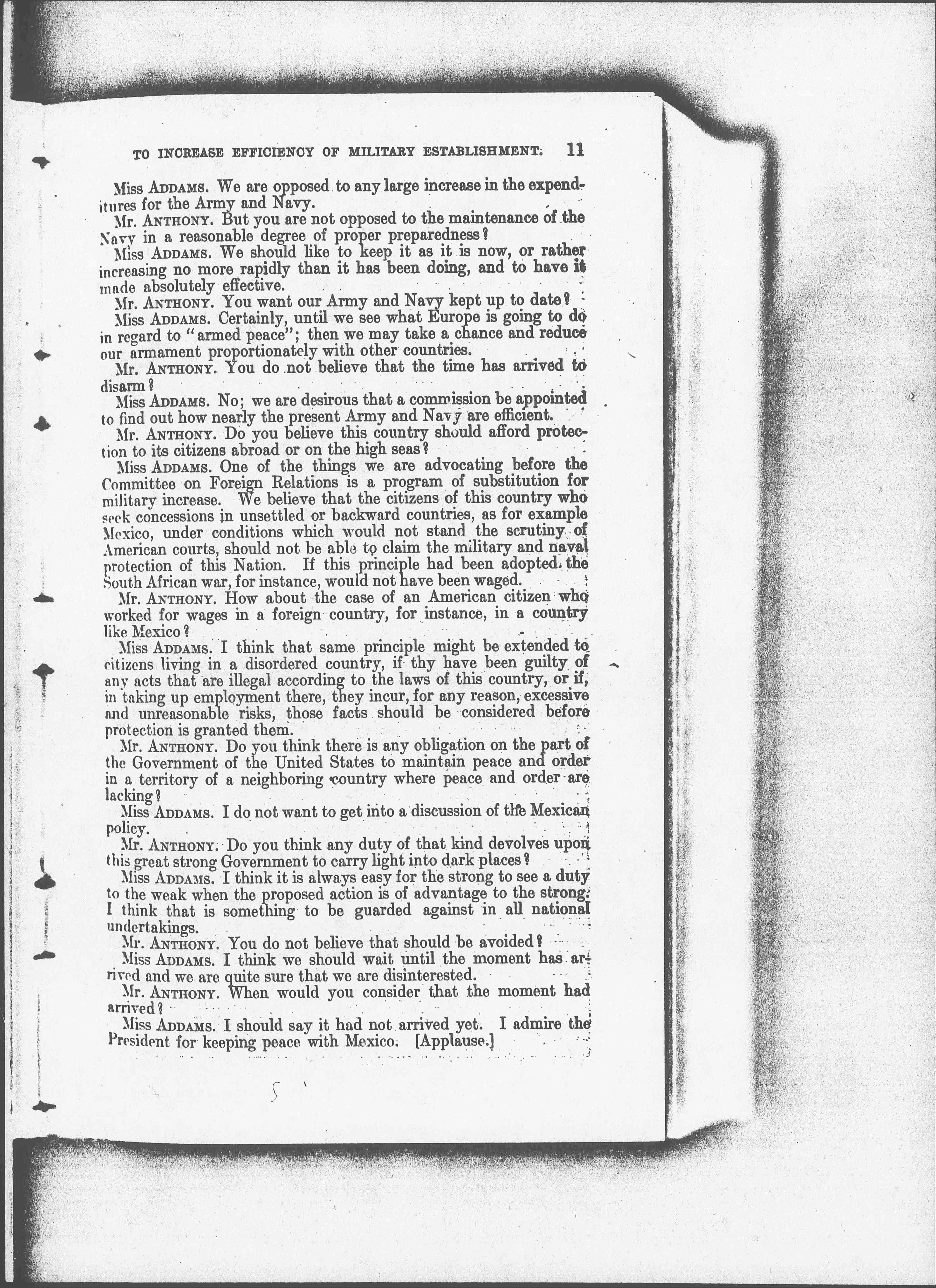 Miss ADDAMS. I should say it had not arrived yet. I admire the President for keeping peace with Mexico. {Applause.} [page 10]