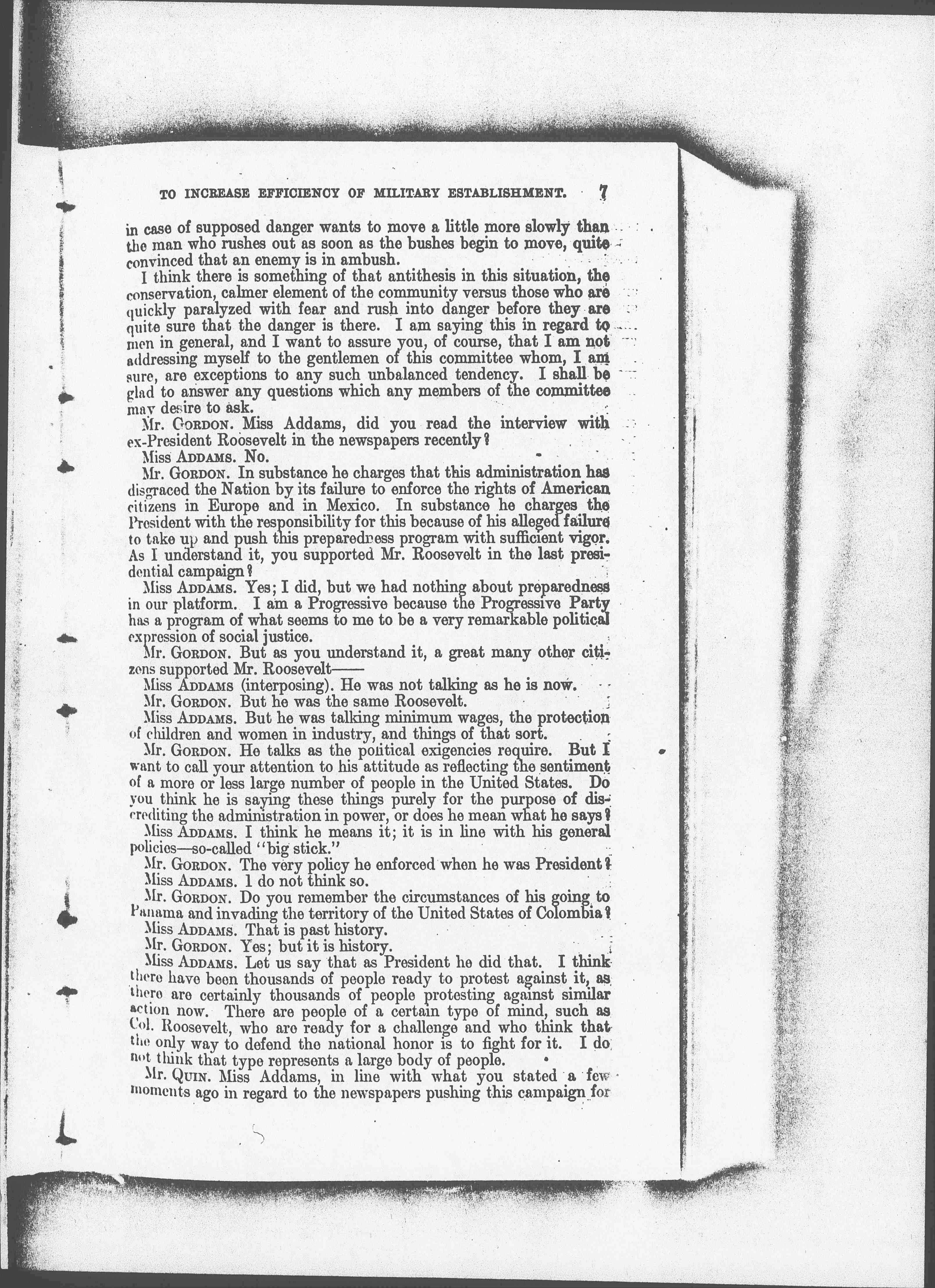 Mr. GORDON. Miss Addams, did you read the interview with ex-President Roosevelt in the newspapers recently?