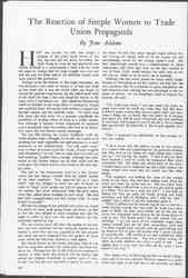 My own observation has discovered little suggestive of this mood, certainly not among the women active in the labor movement. I recall the experiences of a woman whom I had long admired for her valiant services as an organizer in the garment trades and whom I have known from her earliest girlhood.