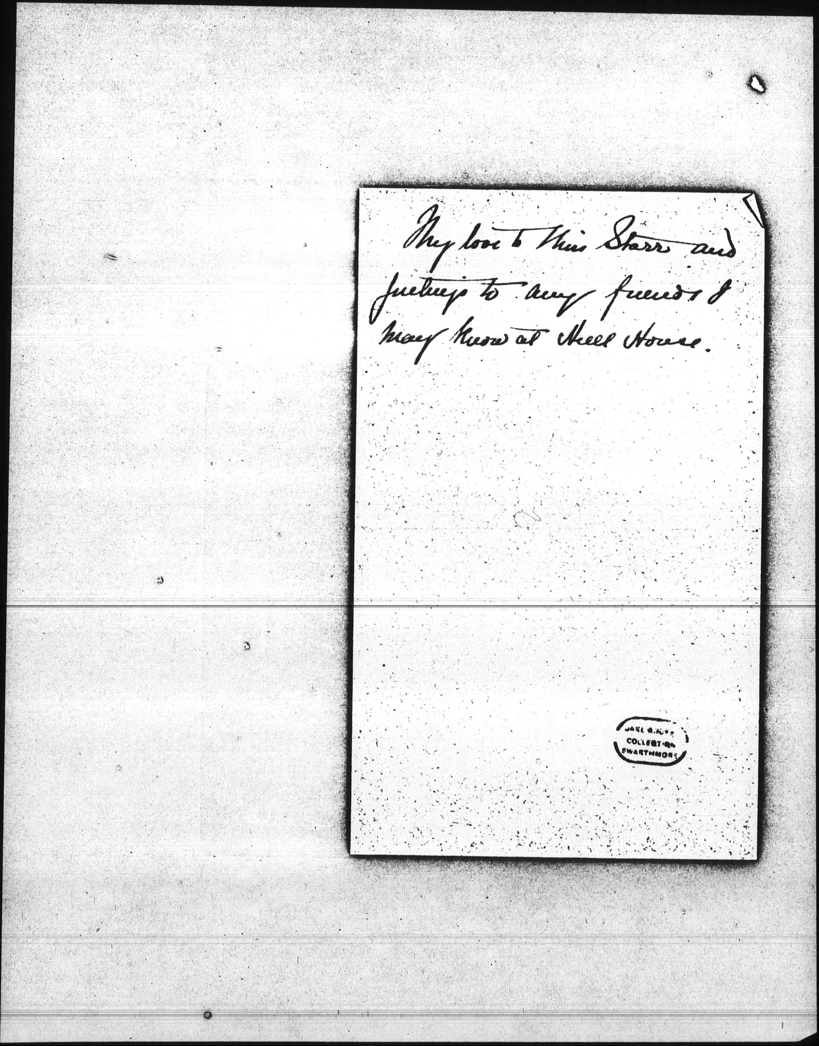 My love to Miss Starr and greetings to any friends I may know at Hull House.