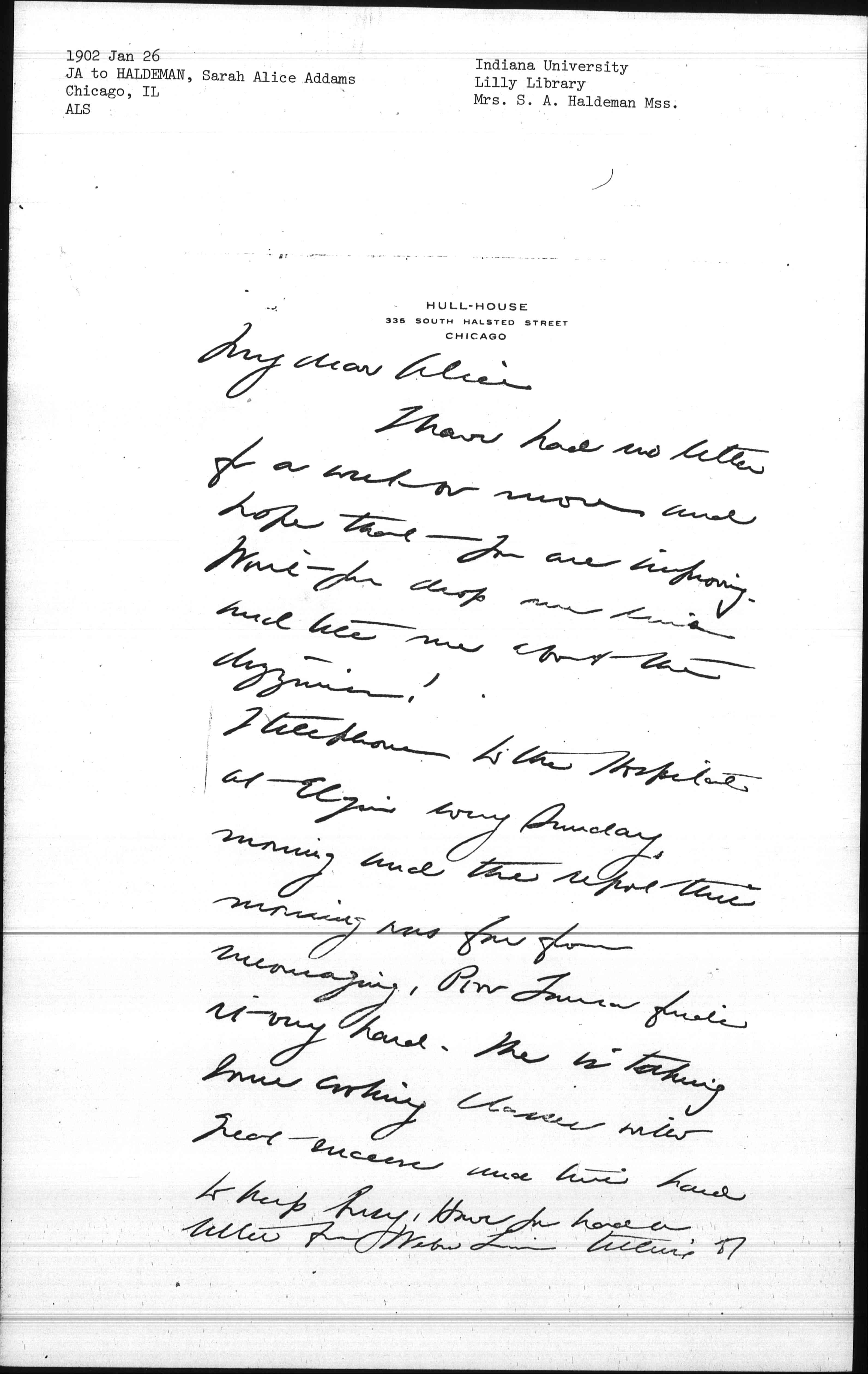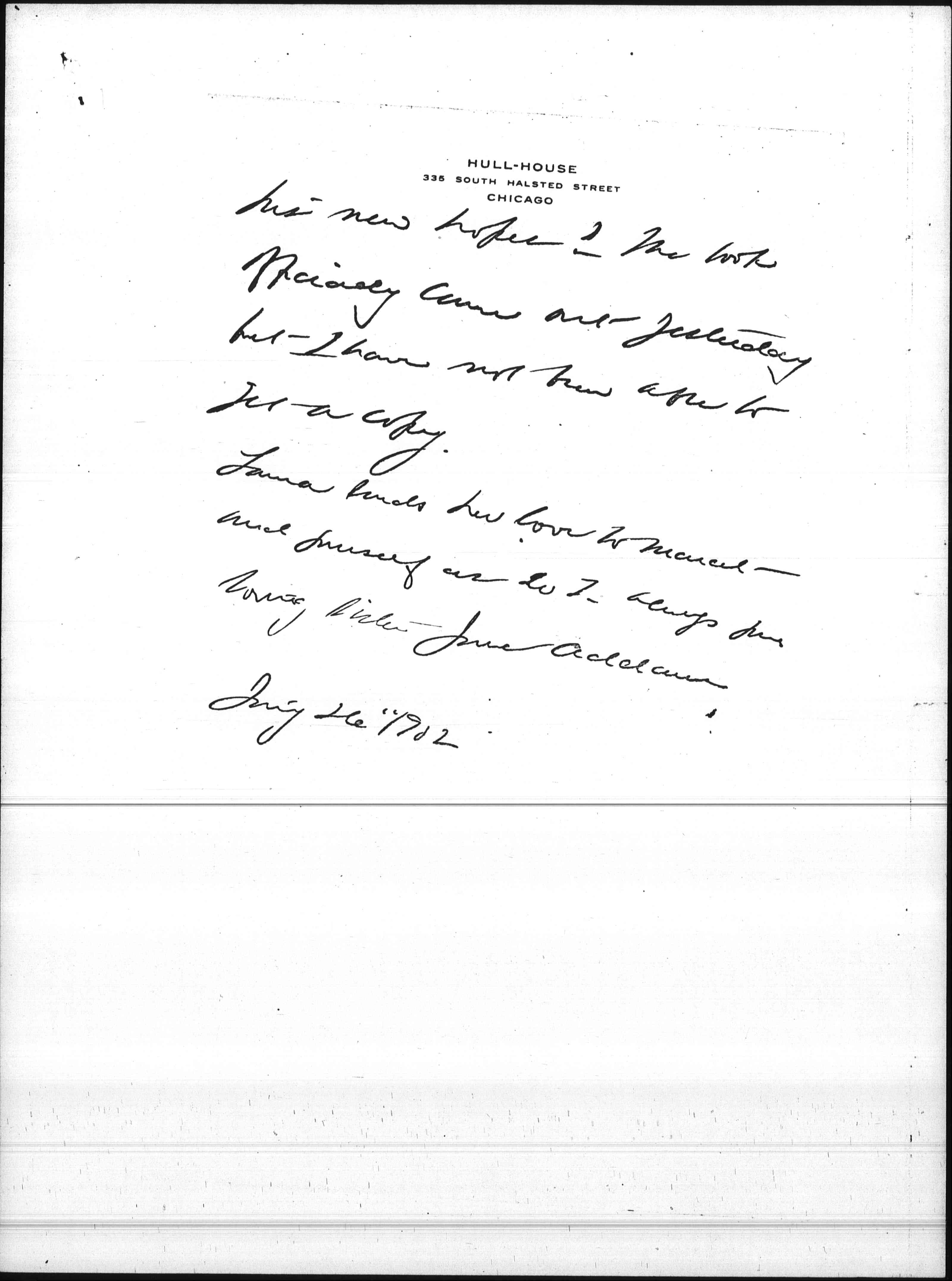 Laura sends her love to Marcet and yourself as do I. Always your loving sister Jane Addams
