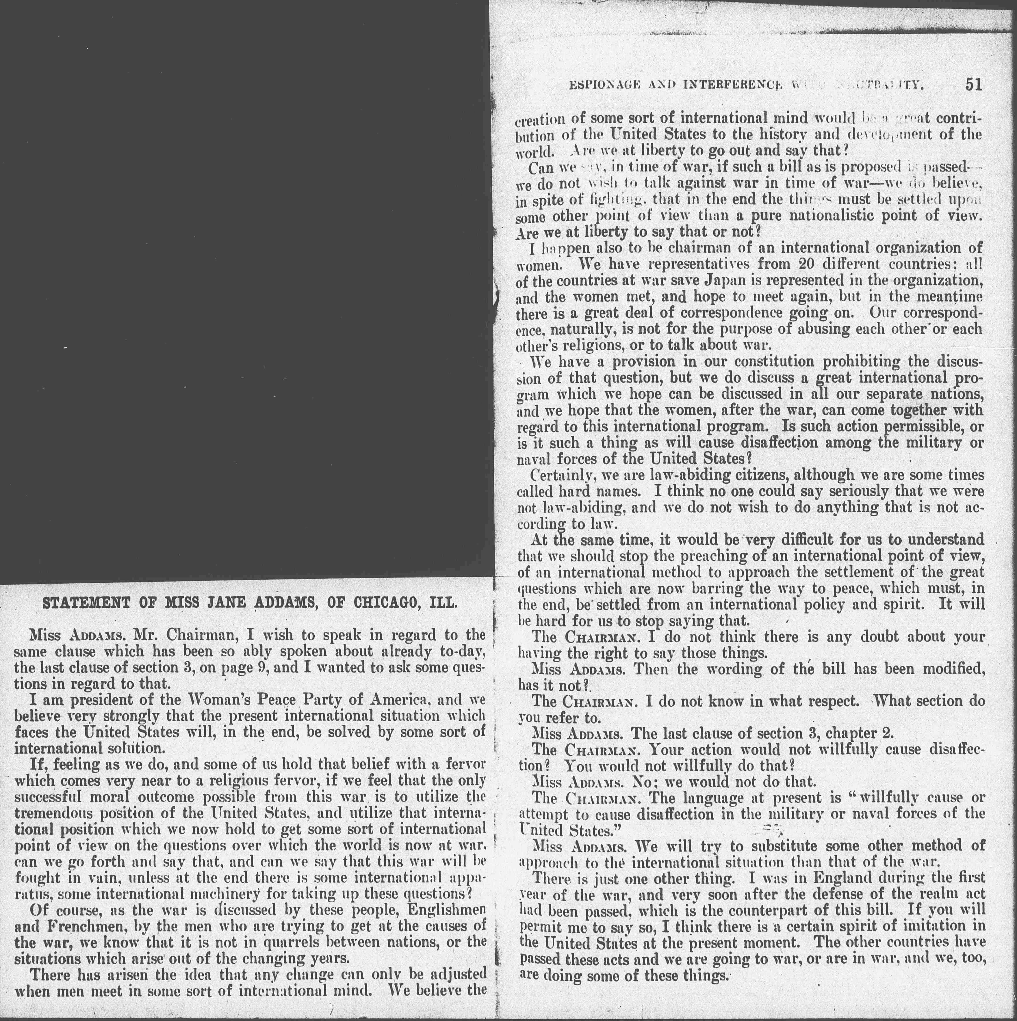 STATEMENT OF MISS JANE ADDAMS, OF CHICAGO, ILL.