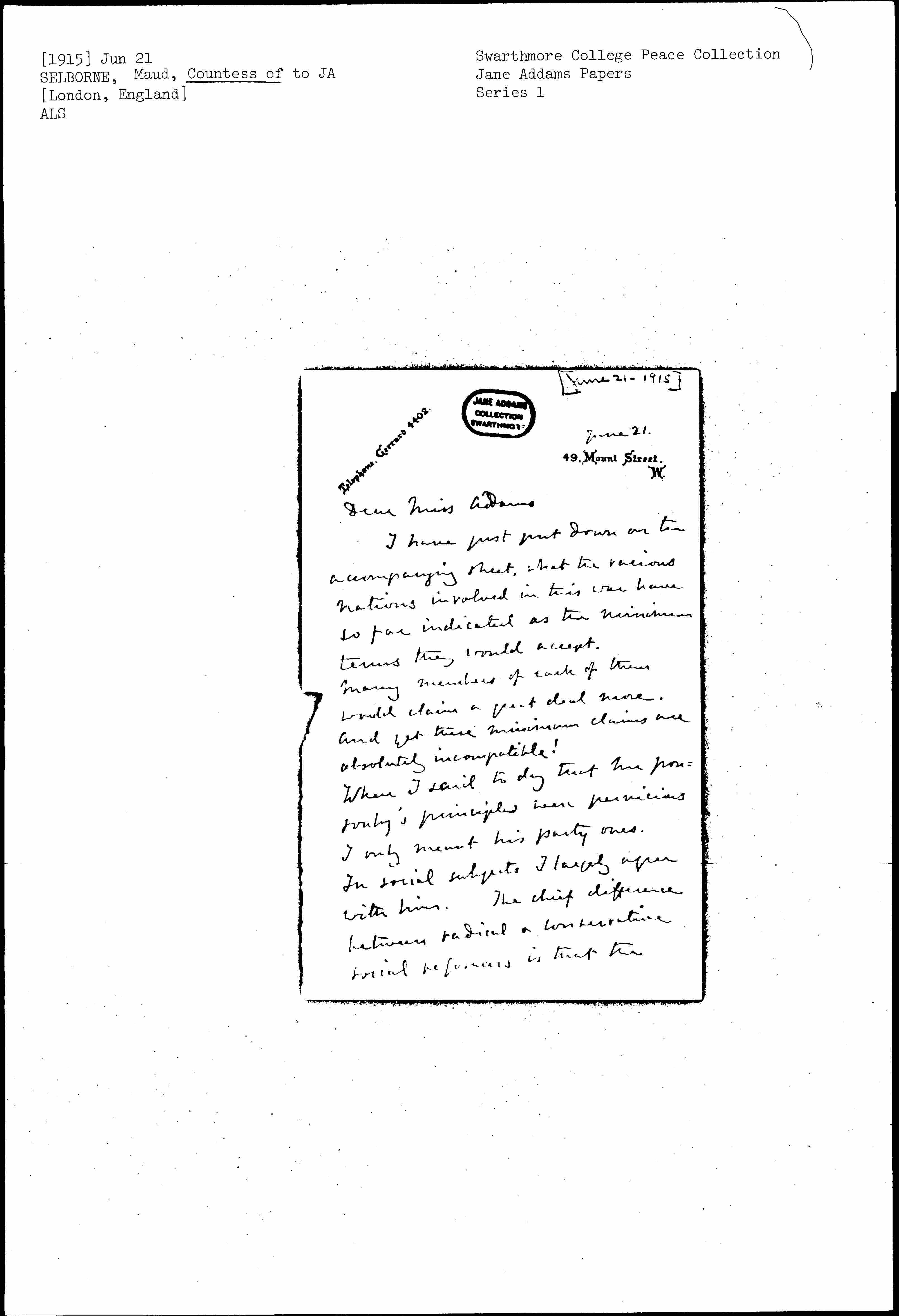When I said [today] that Mr Ponsonby's principles were pernicious I only meant his party ones. In social subjects I largely agree with him. The chief difference between radical & conservative social reformers is that the [page 2] former want to largely alter the constitution, while conservatives think they can get the measures they want just as well through the old mechanism of govt.