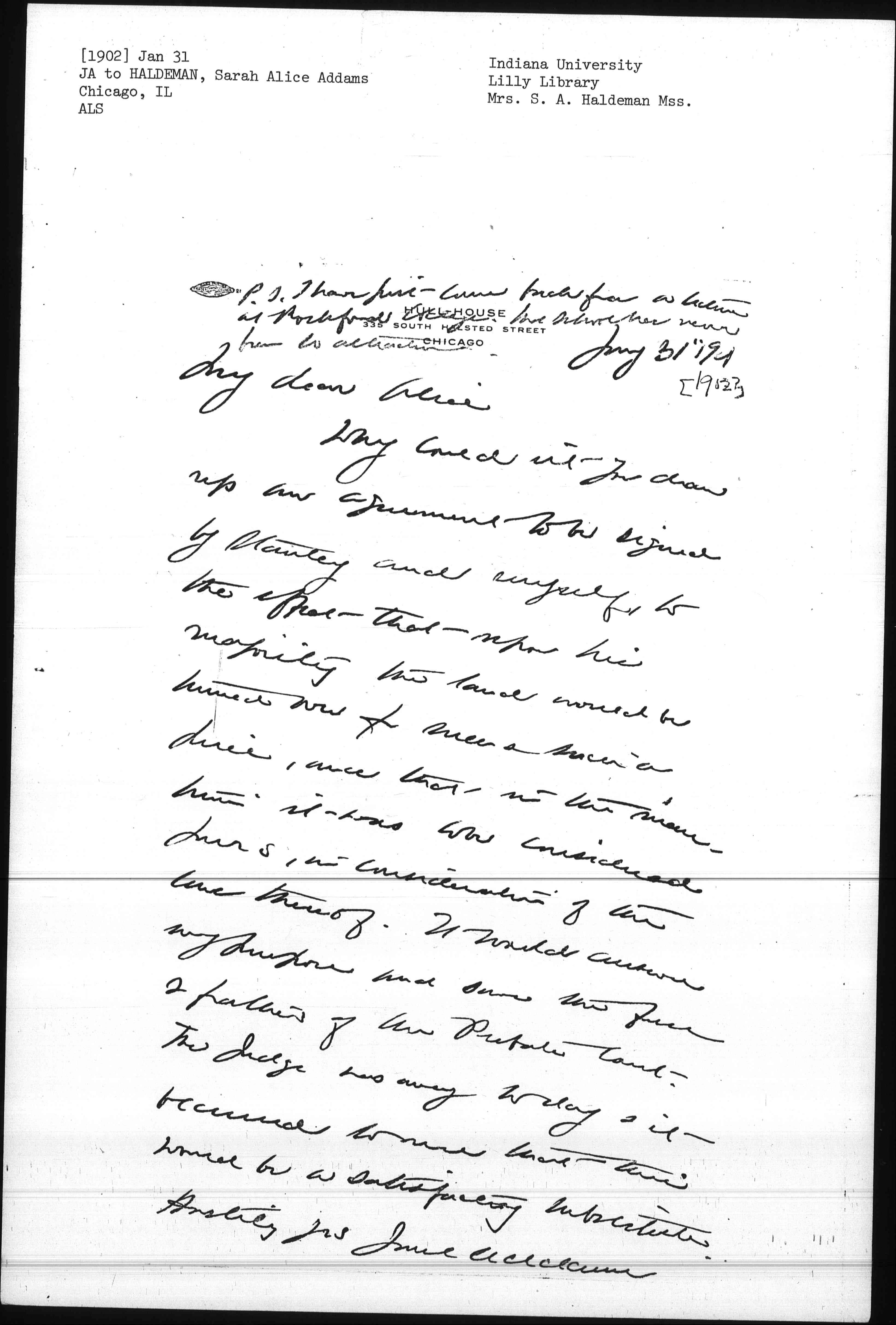 [written at the top of the letter] P. S. I have just come back from a lecture at Rockford College. The school has never been so attractive.