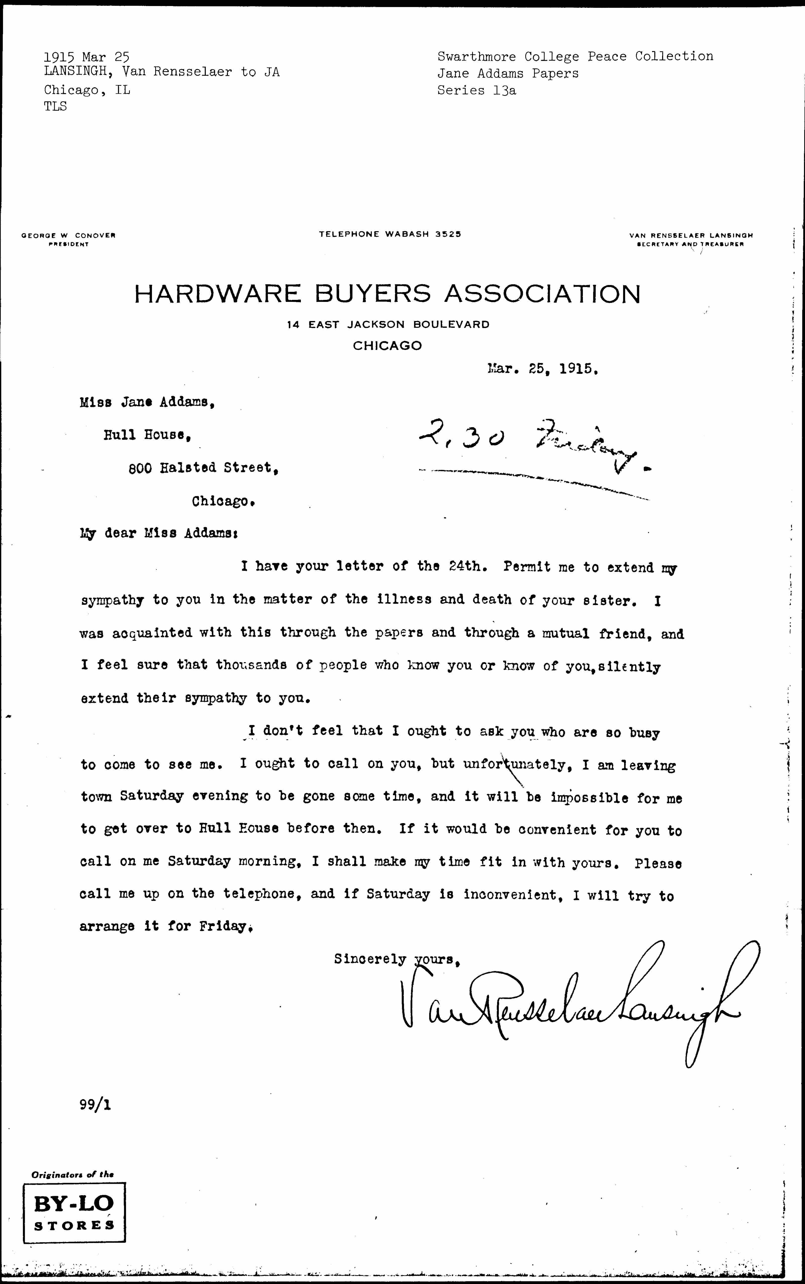 Van Rensselaer Lansingh [signed]