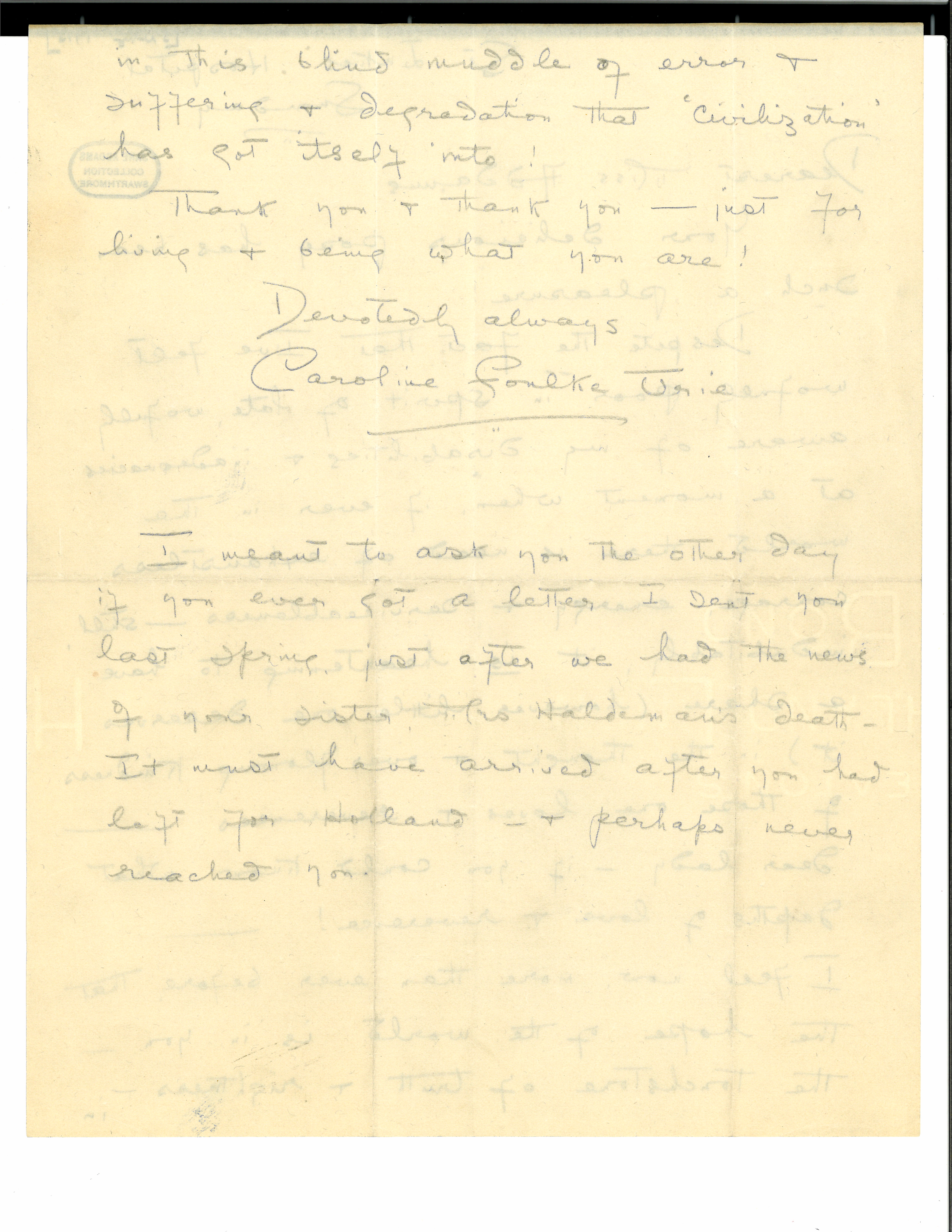 I meant to ask you the other day if you ever got a letter I sent you last spring, just after we had the news of your sister, Mrs Haldeman's death. It must have arrived after you had left for Holland -- & perhaps never reached you.