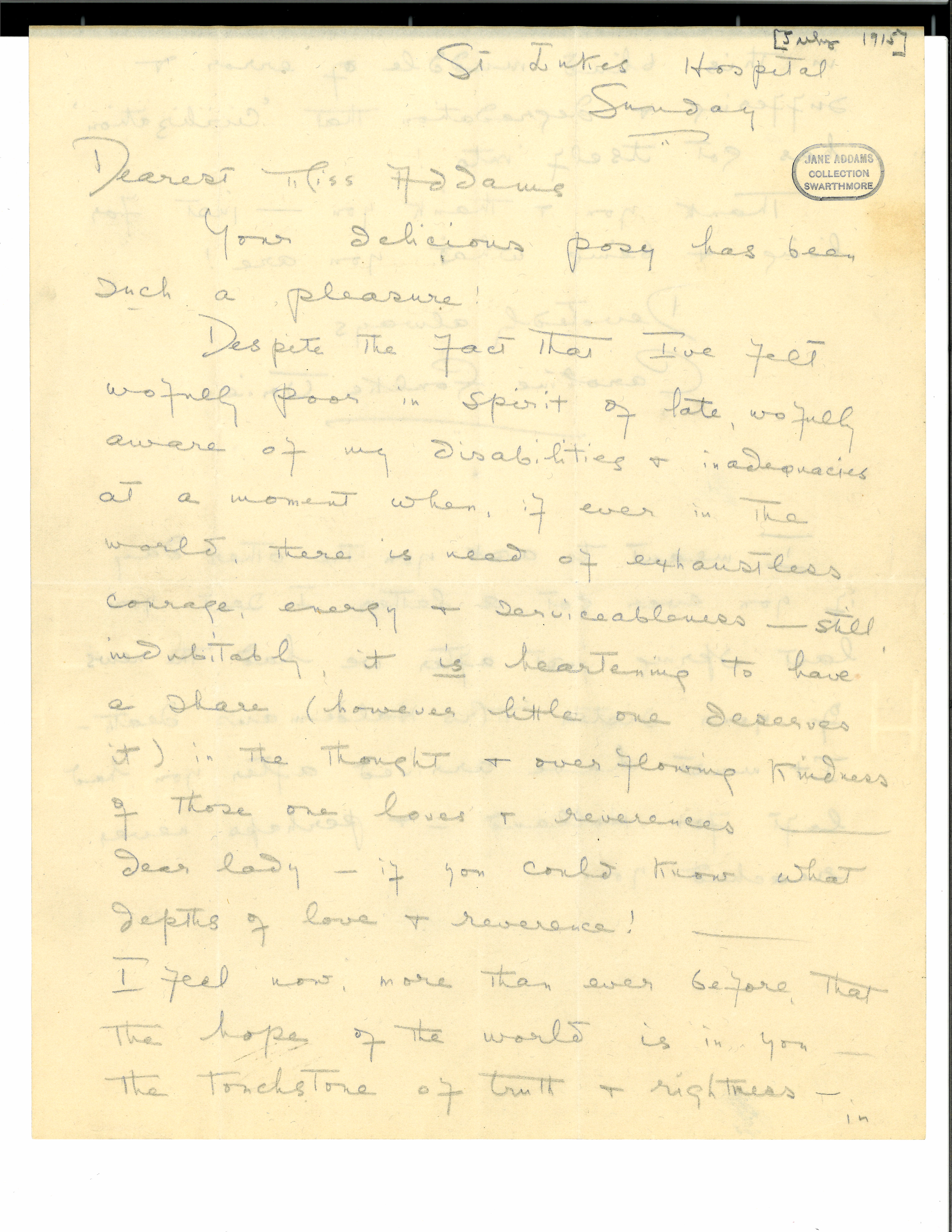 I feel now, more than ever before, that the hope of the world is in you -- the touchstone of truth & rightness -- [page 2] in this blind muddle of error & suffering & degradation that "civilization" has got itself into!