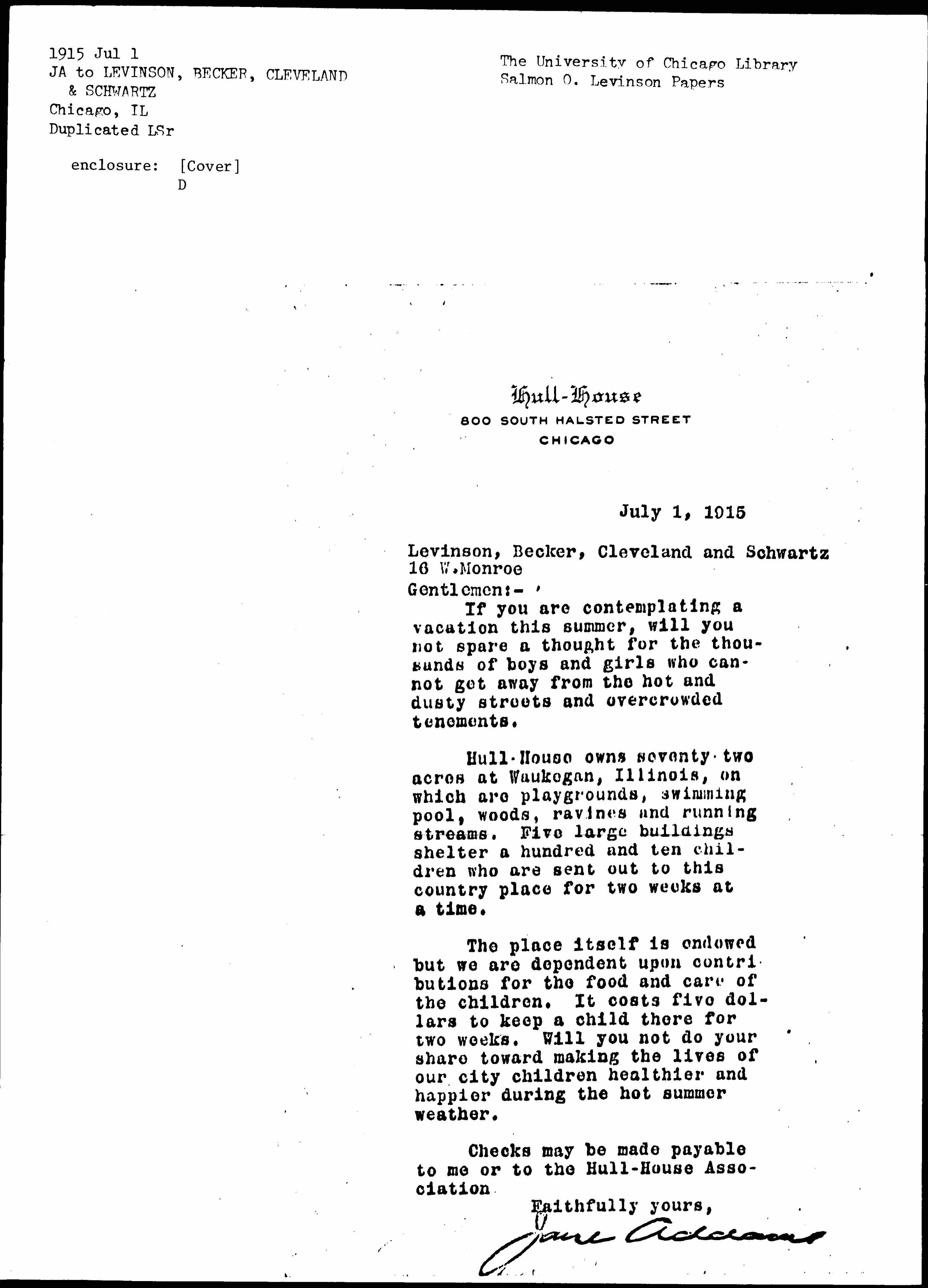 The place itself is endowed but we are dependent upon contributions for the food and care of the children. It costs five dollars to keep a child there for two weeks. Will you not do your share toward making the lives of our city children healthier and happier during the hot summer weather.
