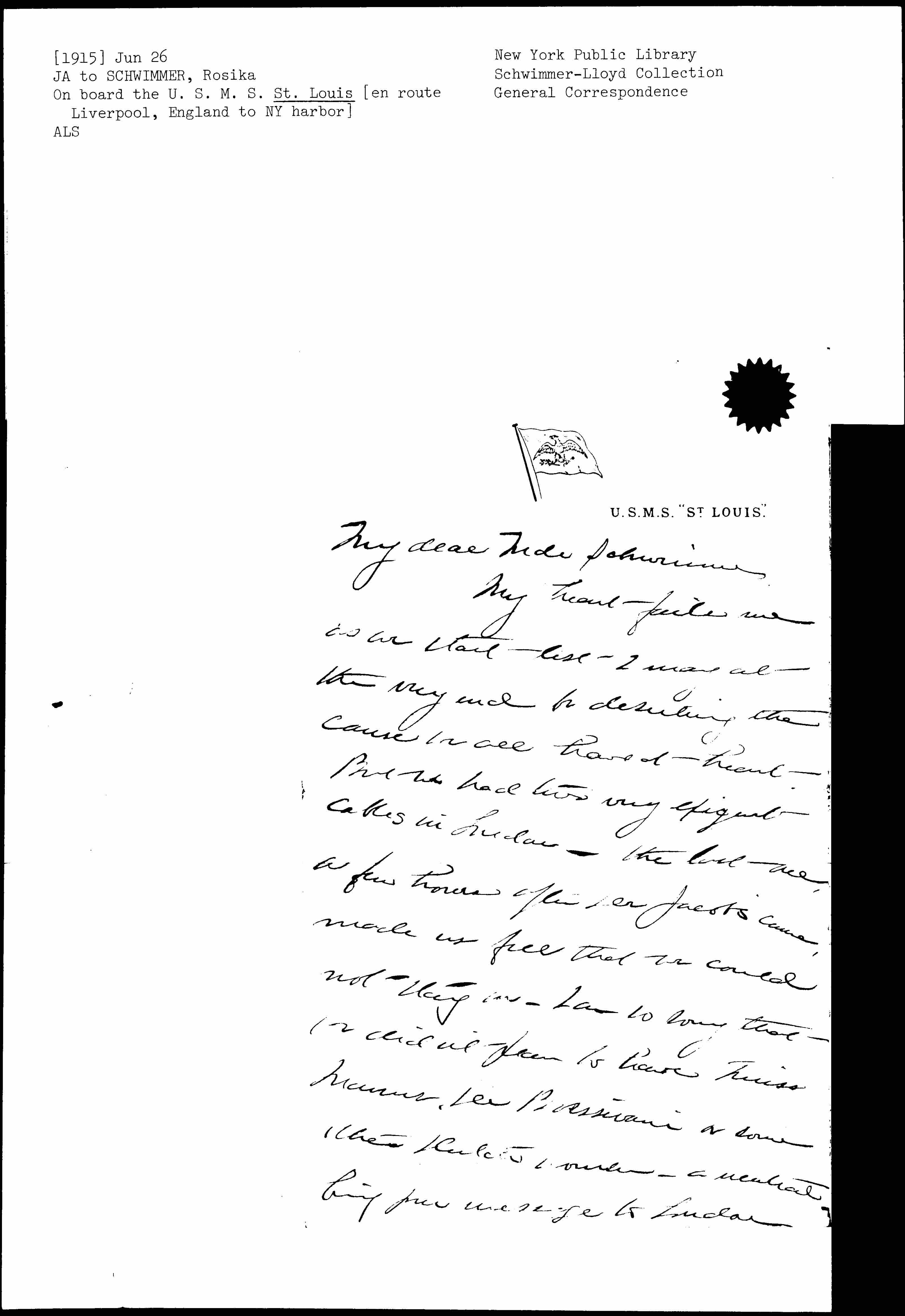 I am sure that Miss Marshall, Miss [Macmillan] and Miss Balch could do all I could in London -- and we inferred that the message had to do with London -- They are a wonderful set of women committed to the Congress there in London.