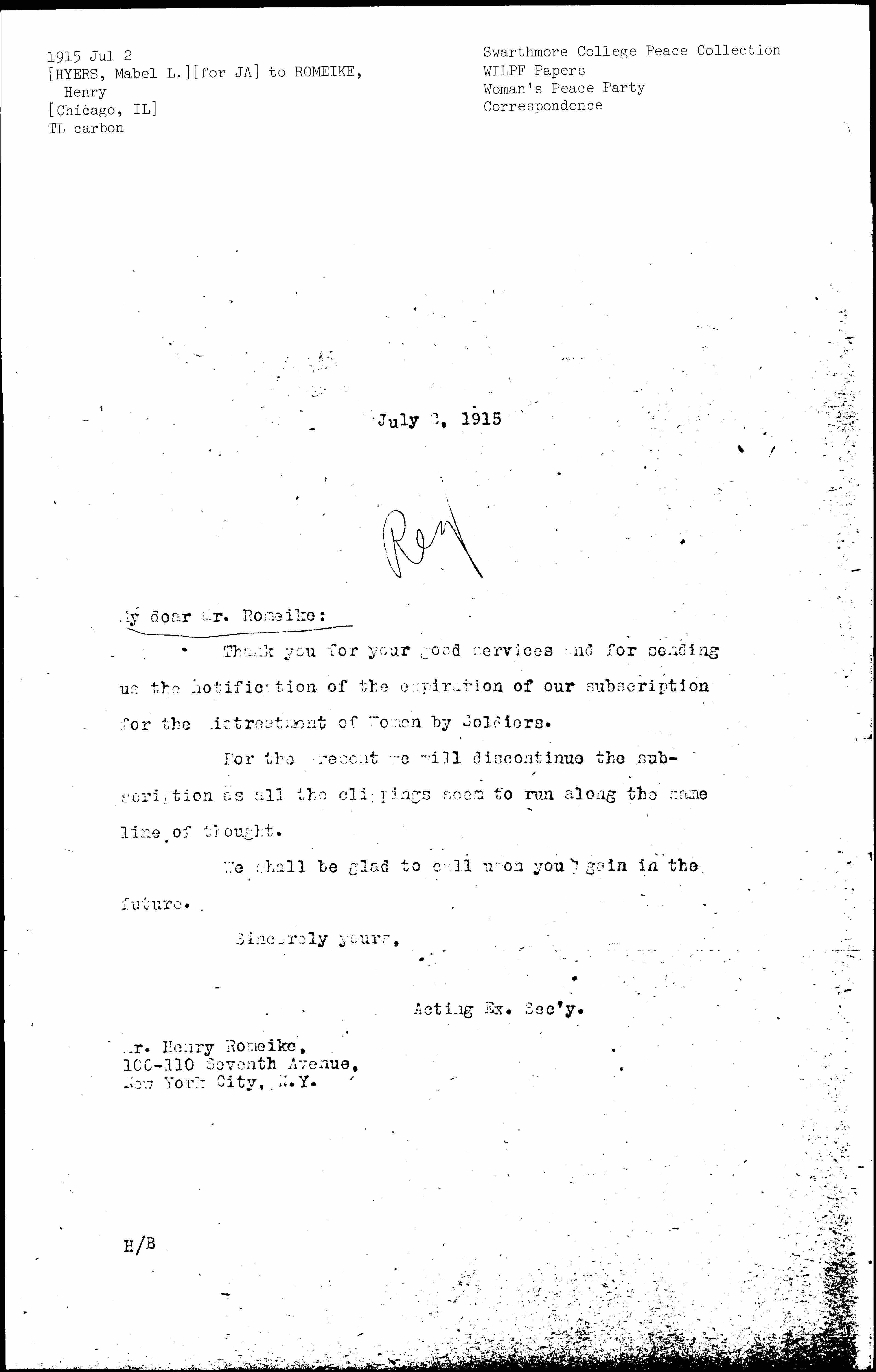 For the present we will discontinue the subscription as all the clippings seem to run along the same line of thought.