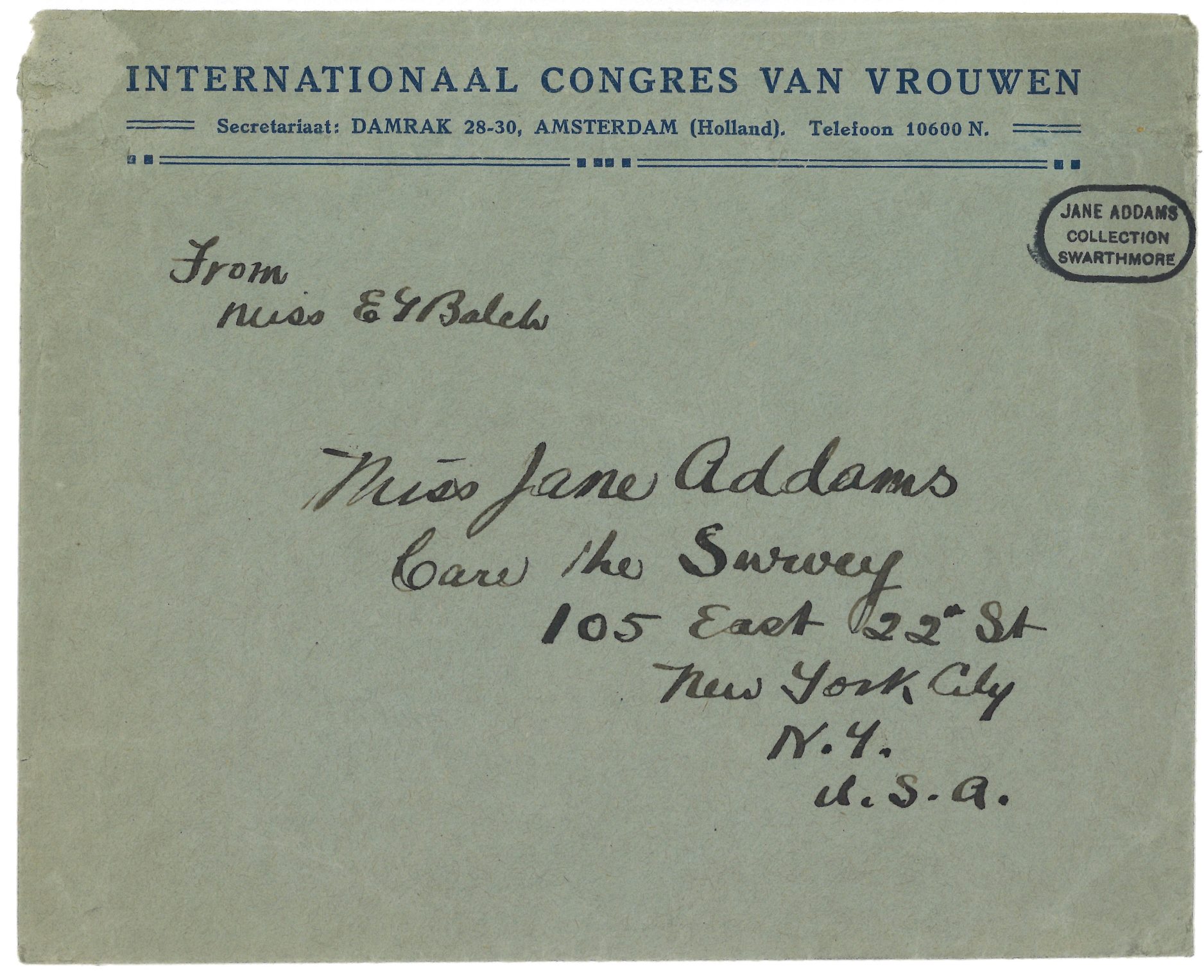 I wonder if my bad and laborious typewriting or my illegible penmanship seems to you the [illegible] [at] any rate both carry [so?] much love. There is a great deal more that is interesting that I should like to tell you but I have not the time to write it nor you to read it. Miss Manus is back and office and organization work is beginning again. The question of an office and [a] secretary are under discussion. The organization of the committees in the [various] countries is going on finely notably in France and in Hungary.