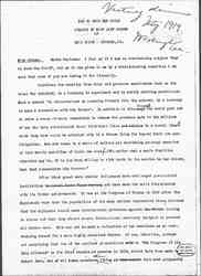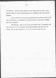 What did this nation do when it broke away from its long isolation and came into European affairs? We all certainly admire the reaction upon our narrow national existence when an American army was sent to fight in an international cause. But at the same time our isolation was [illegible] broken in another way. Every person in these United States who produced more food or who saved food in order to keep from starvation the millions of [illegible] Europeans who had become dependent upon America, developed a sense of participation in a great cause. They enlarged their sympathies and stretched their imaginations [by?] was the old method of doing the will and learning the doctrine.