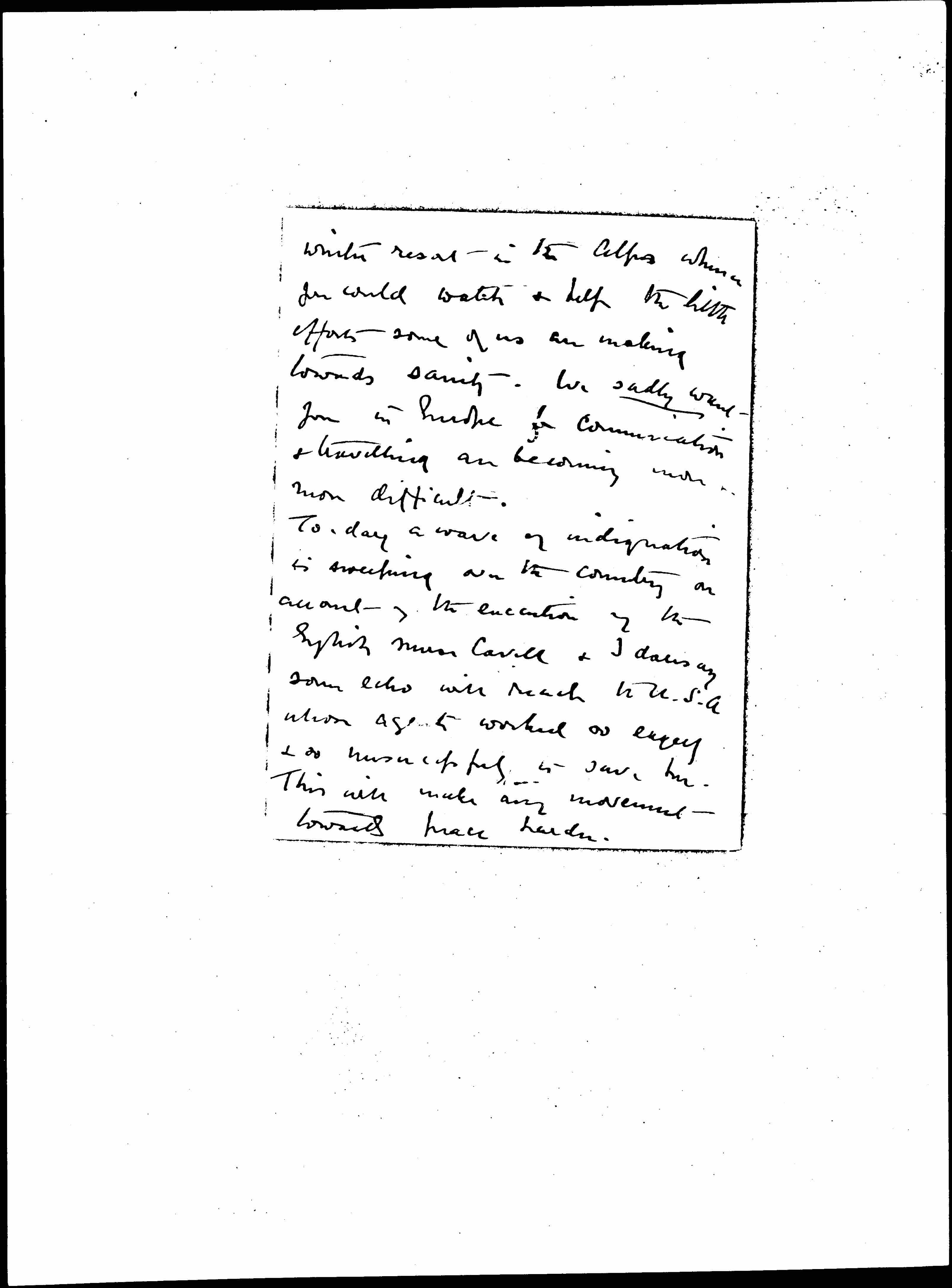 [Today] a wave of indignation is sweeping over the country on account [of] the execution of the English nurse Cavell & I daresay some echo will reach [the] U.S.A whose agents worked so [eagerly?] & so [unsuccessfully] to save her. This will make any movement towards peace harder. [page 3]