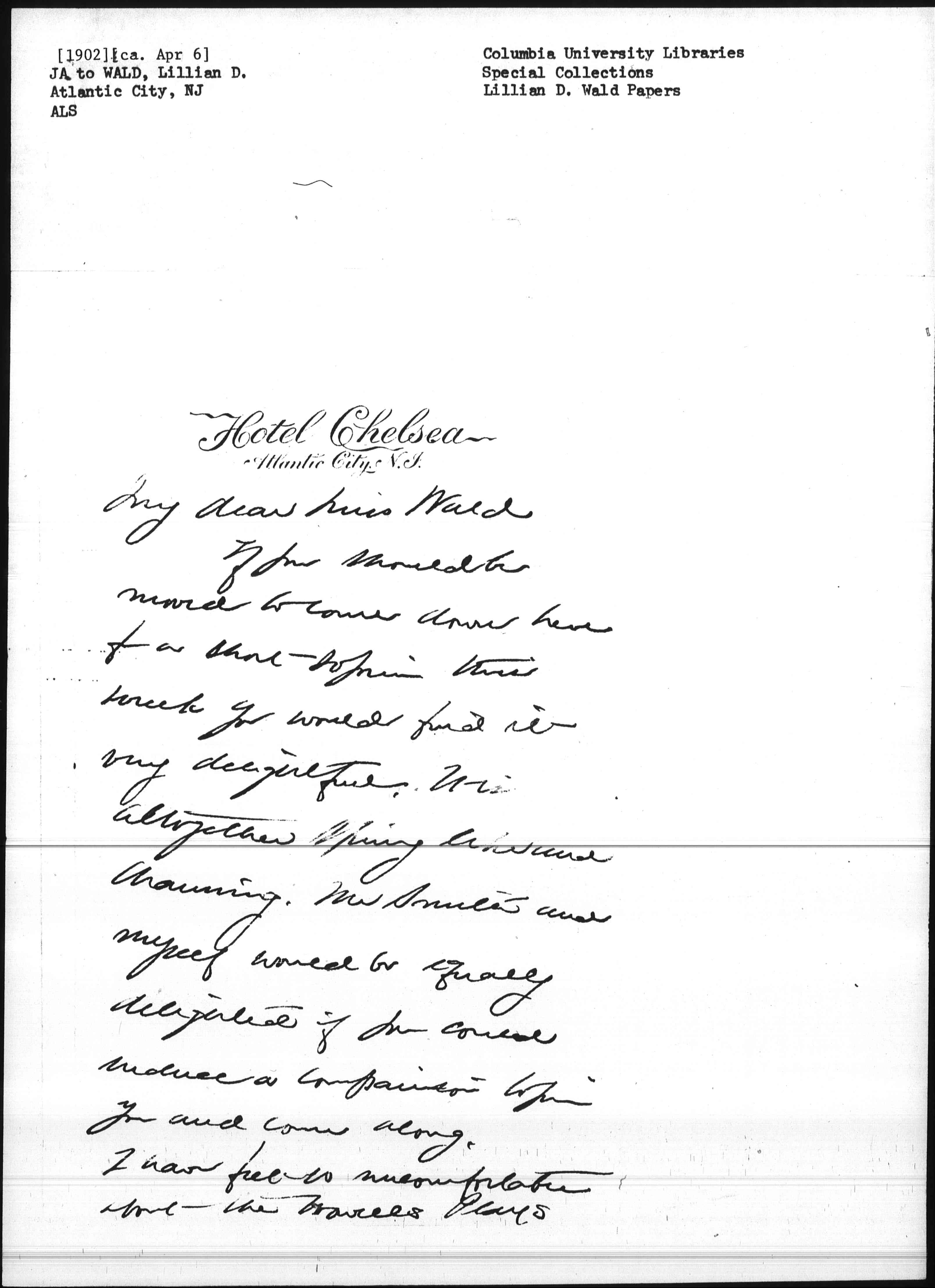 My dear Miss Wald