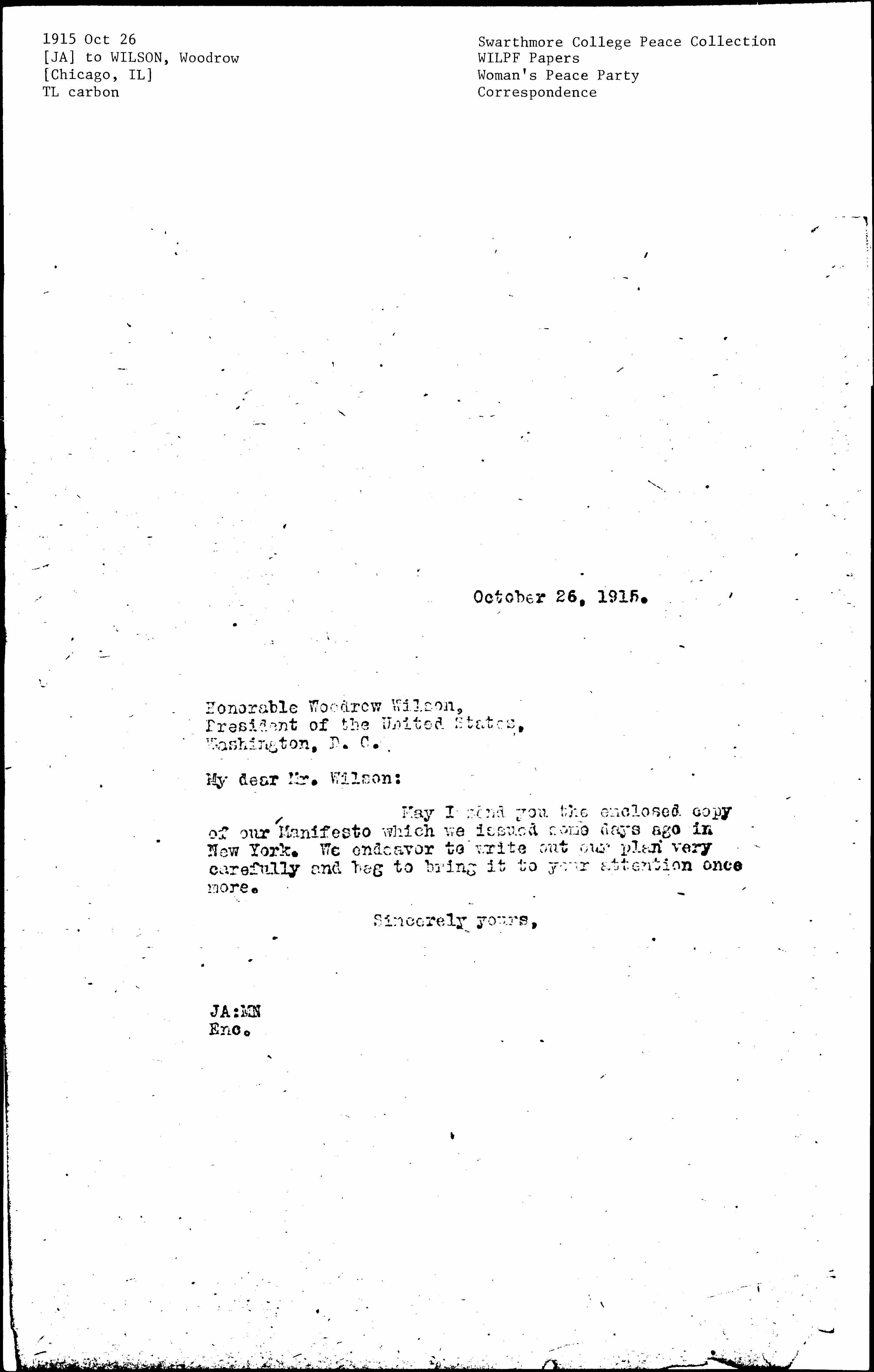 May I send you the enclosed copy of our Manifesto which we issued some days ago in New York. We endeavor to write out our plan very carefully and beg to bring it to your attention once more.