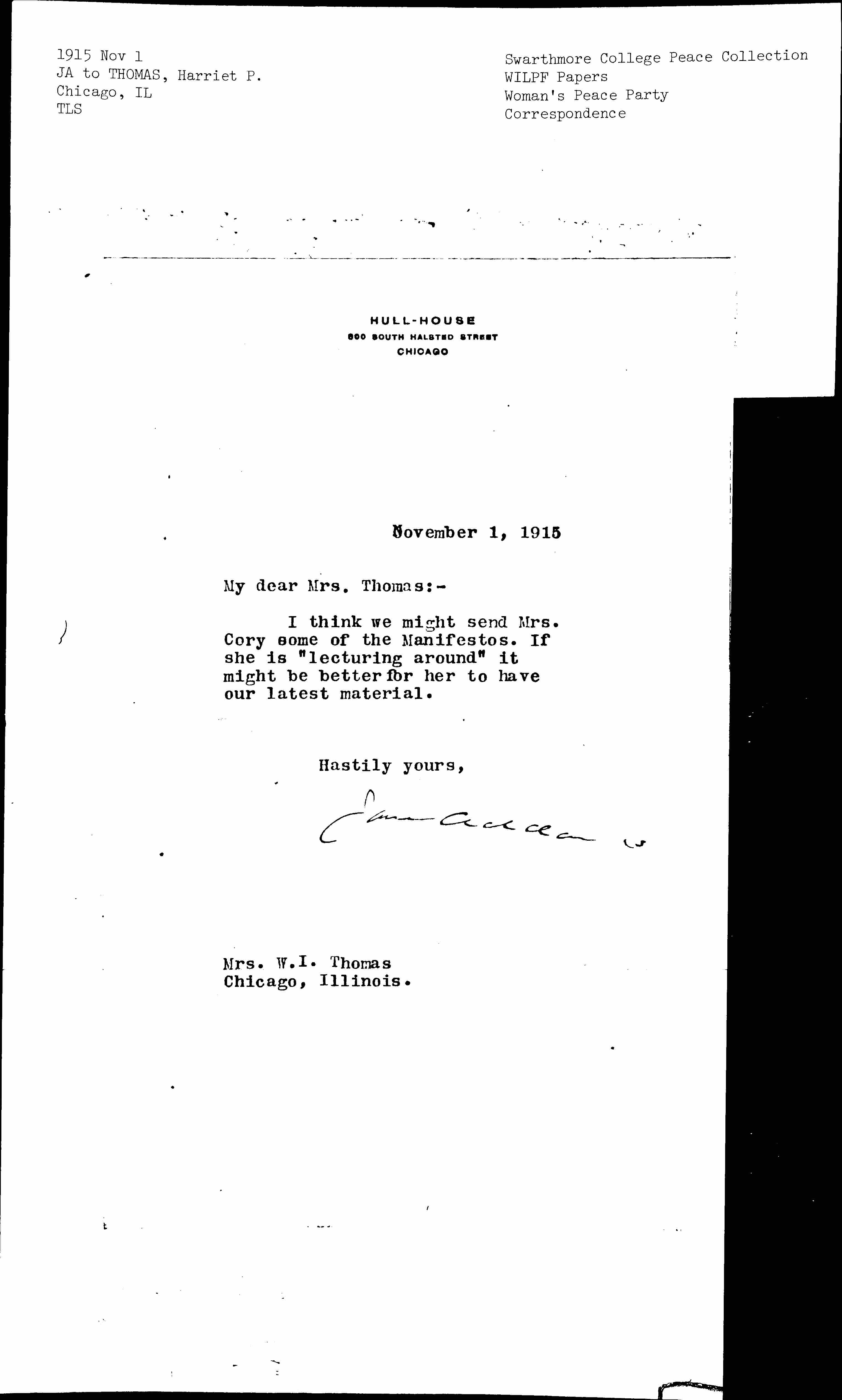 Jane Addams [signed]
