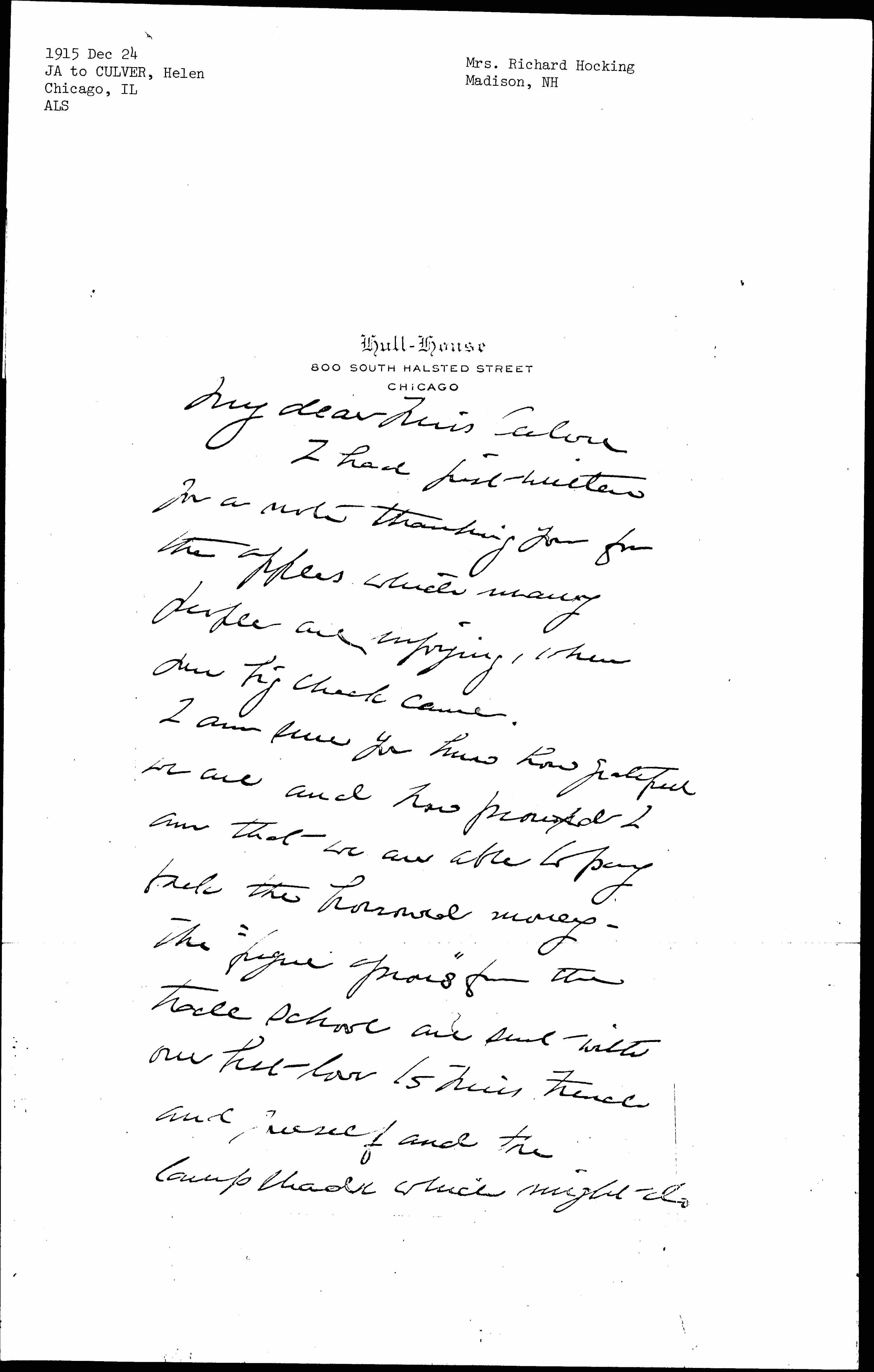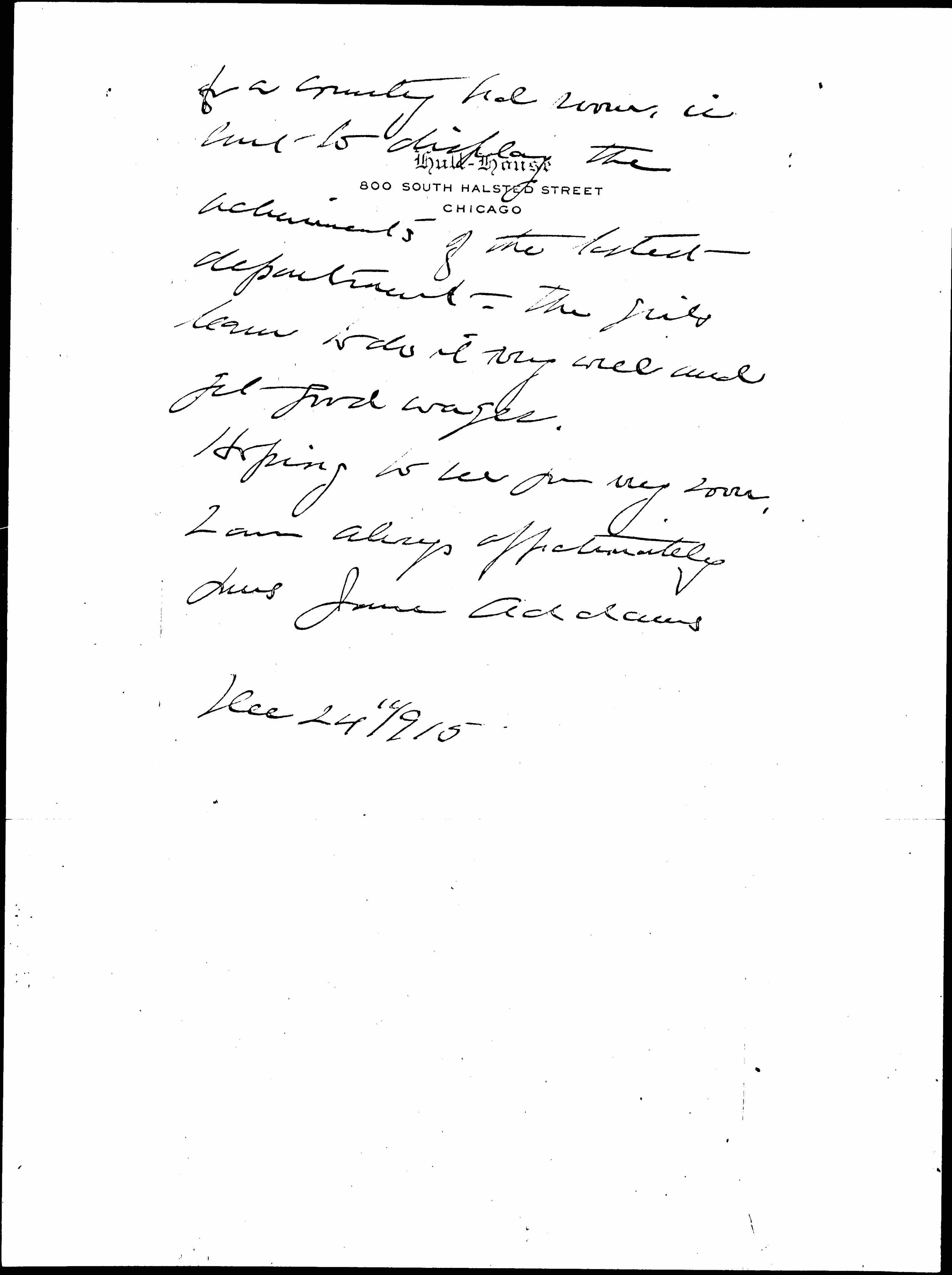 Hoping to see you very soon, I am always affectionately yours Jane Addams