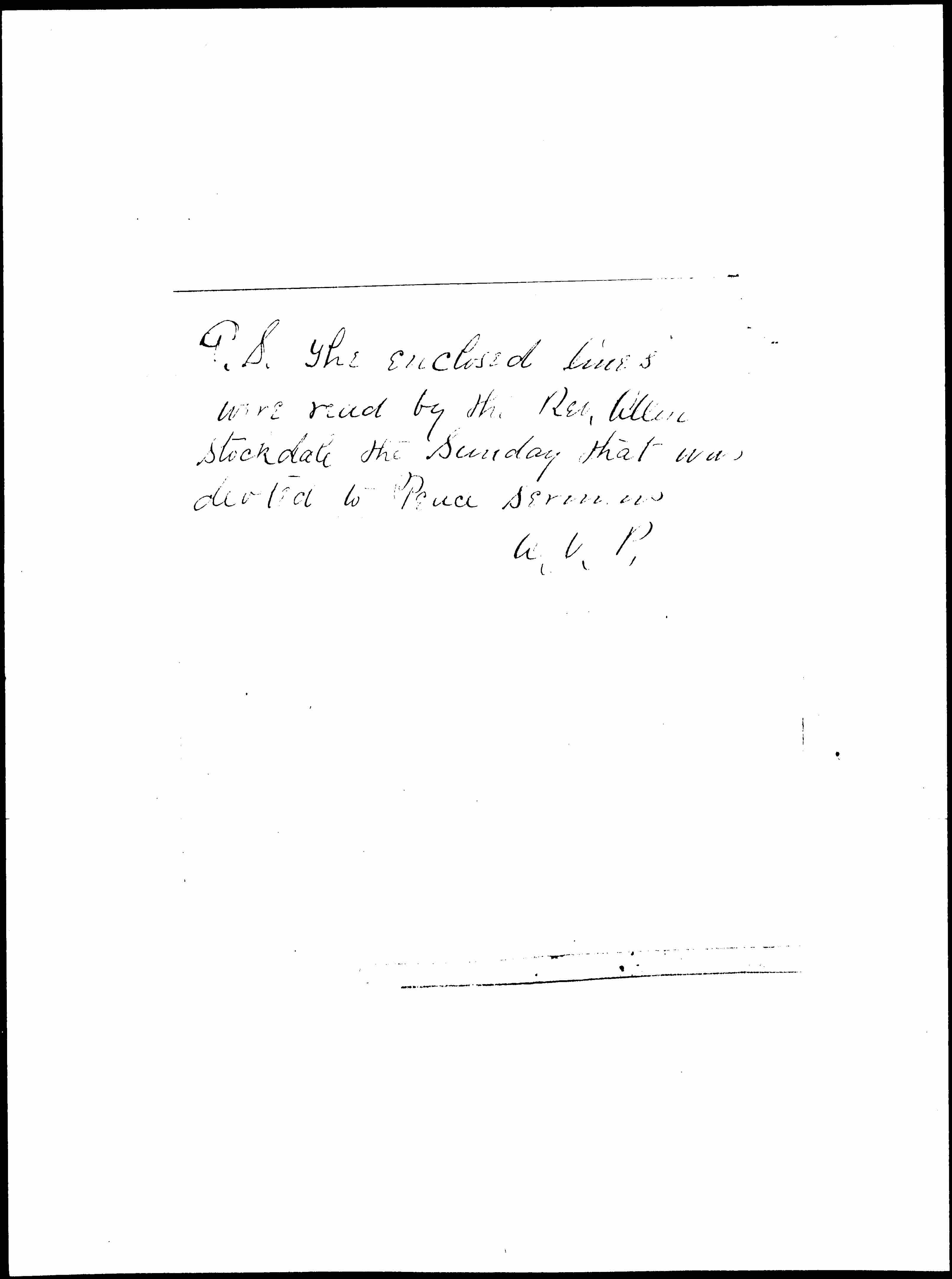 P.S. The enclosed lines were read by the Rev. Allen Stockdale the Sunday that was devoted to Peace sermons