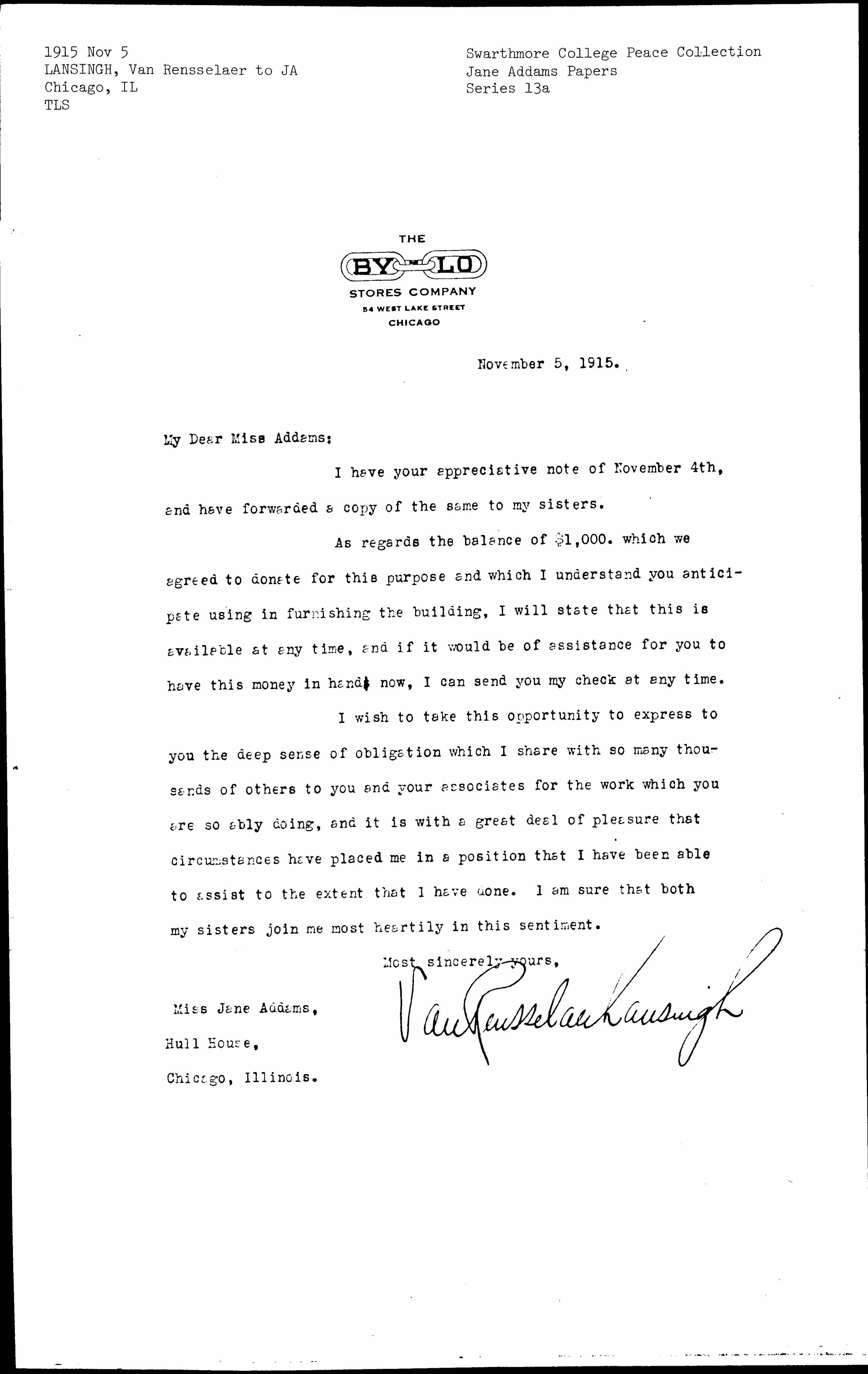 Van Rensselaer Lansingh [signed]