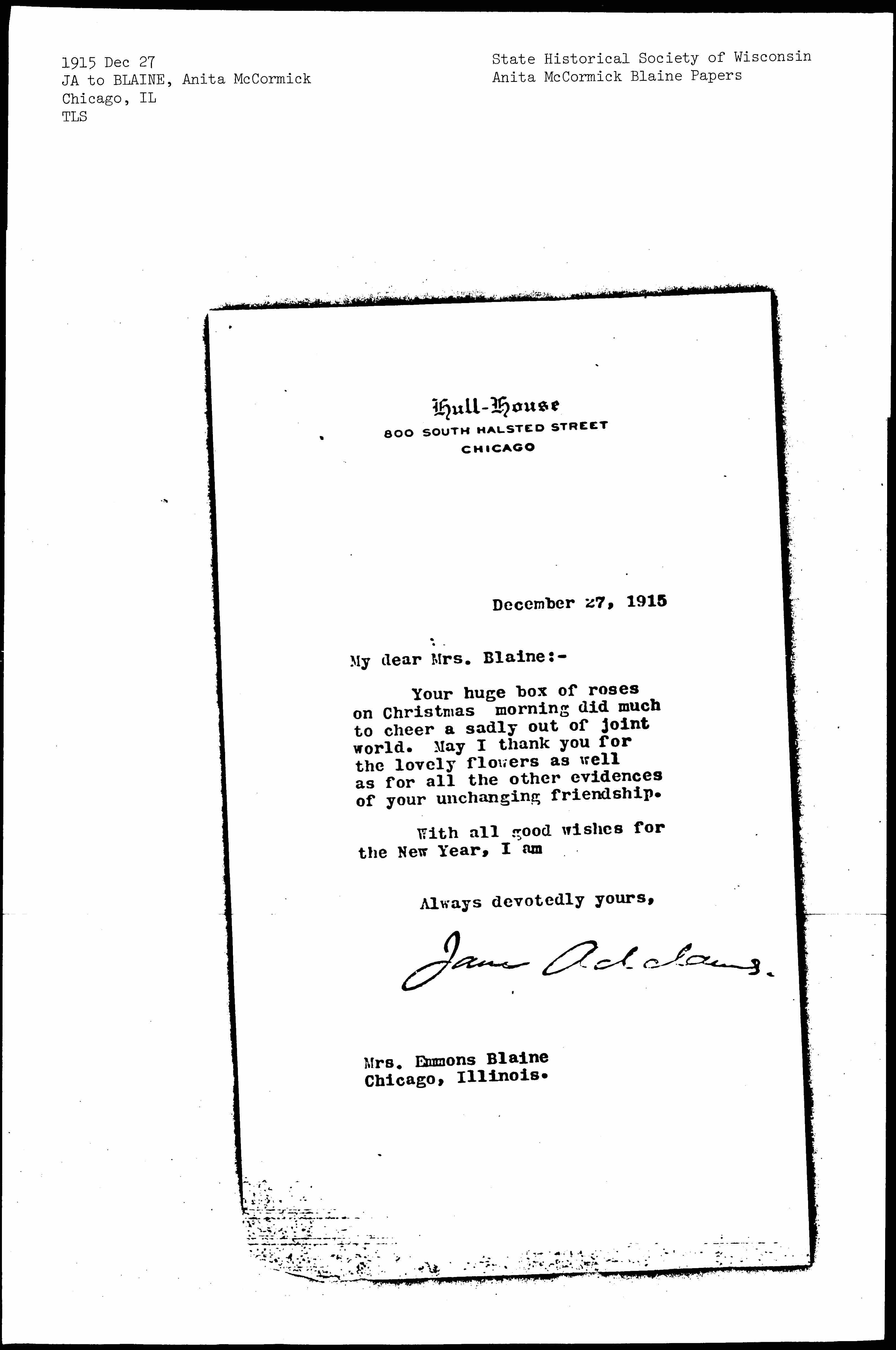 Jane Addams. [signed]
