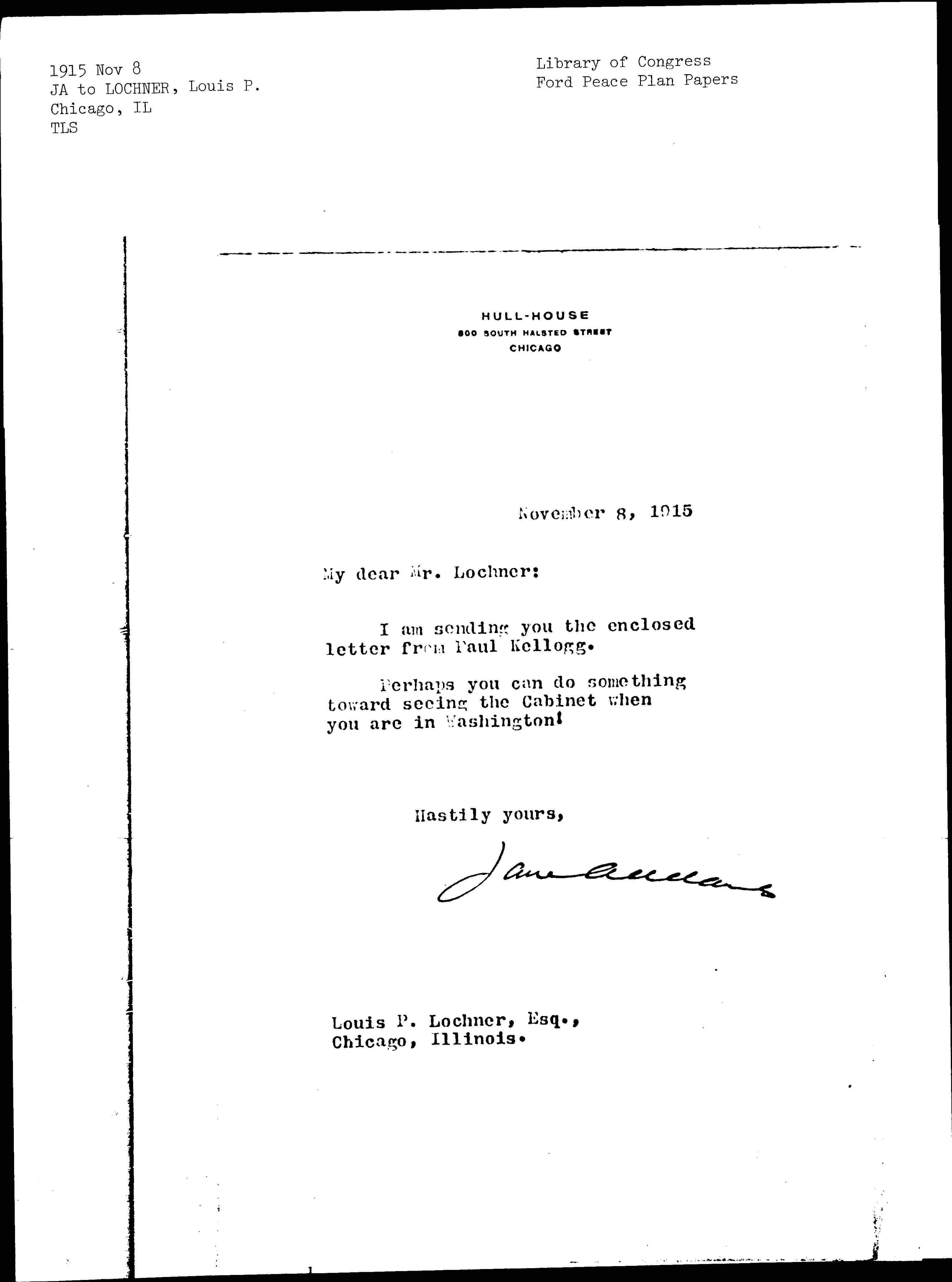 Jane Addams [signed]