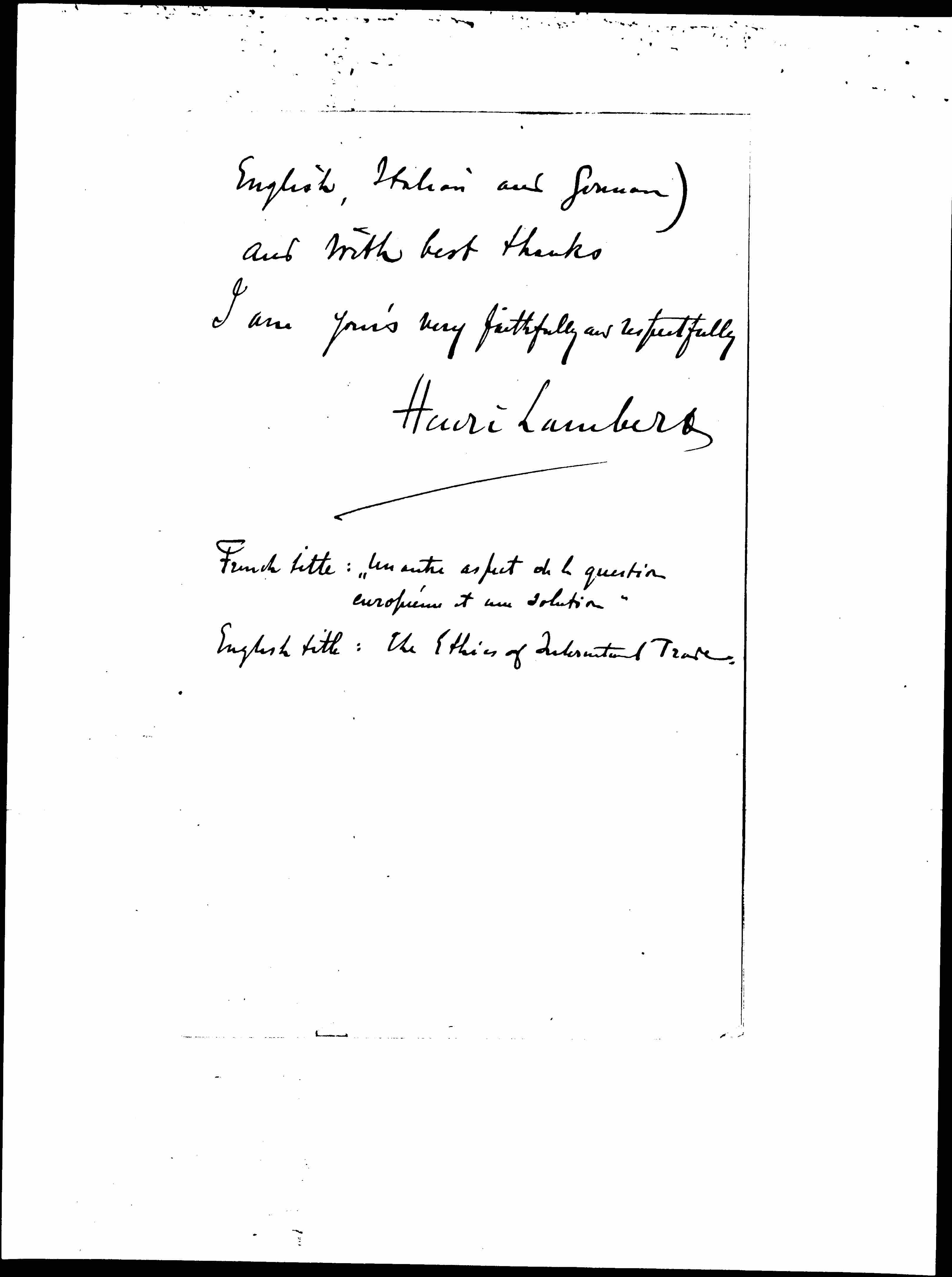 I take the liberty of sending you my pamphlet (which has been translated in [page 2] English, Italian and German) and with best thanks