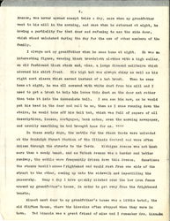 The house itself, was big and roomy. The front door, on Wabash [page 2] Avenue, was never opened expect twice a day, once when my grandfather went to his mill in the morning, and once when he returned at night, he having a partiality for that door and refusing to use the side door, which stood unlatched during the day for the use of other members of the family.