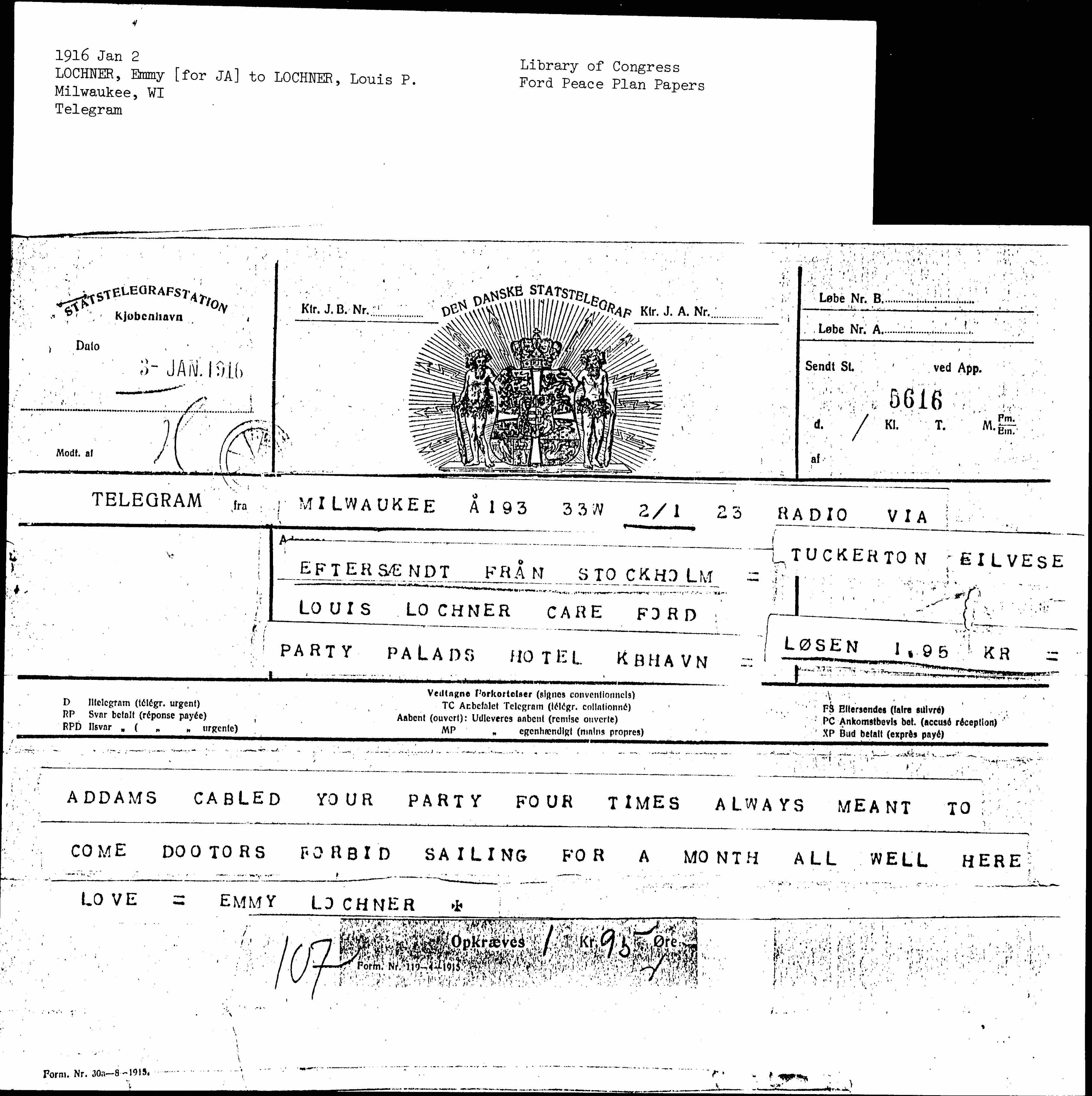 LOUIS LOCHNER CARE FORD PARTY PALADS HOTEL KBHAVN