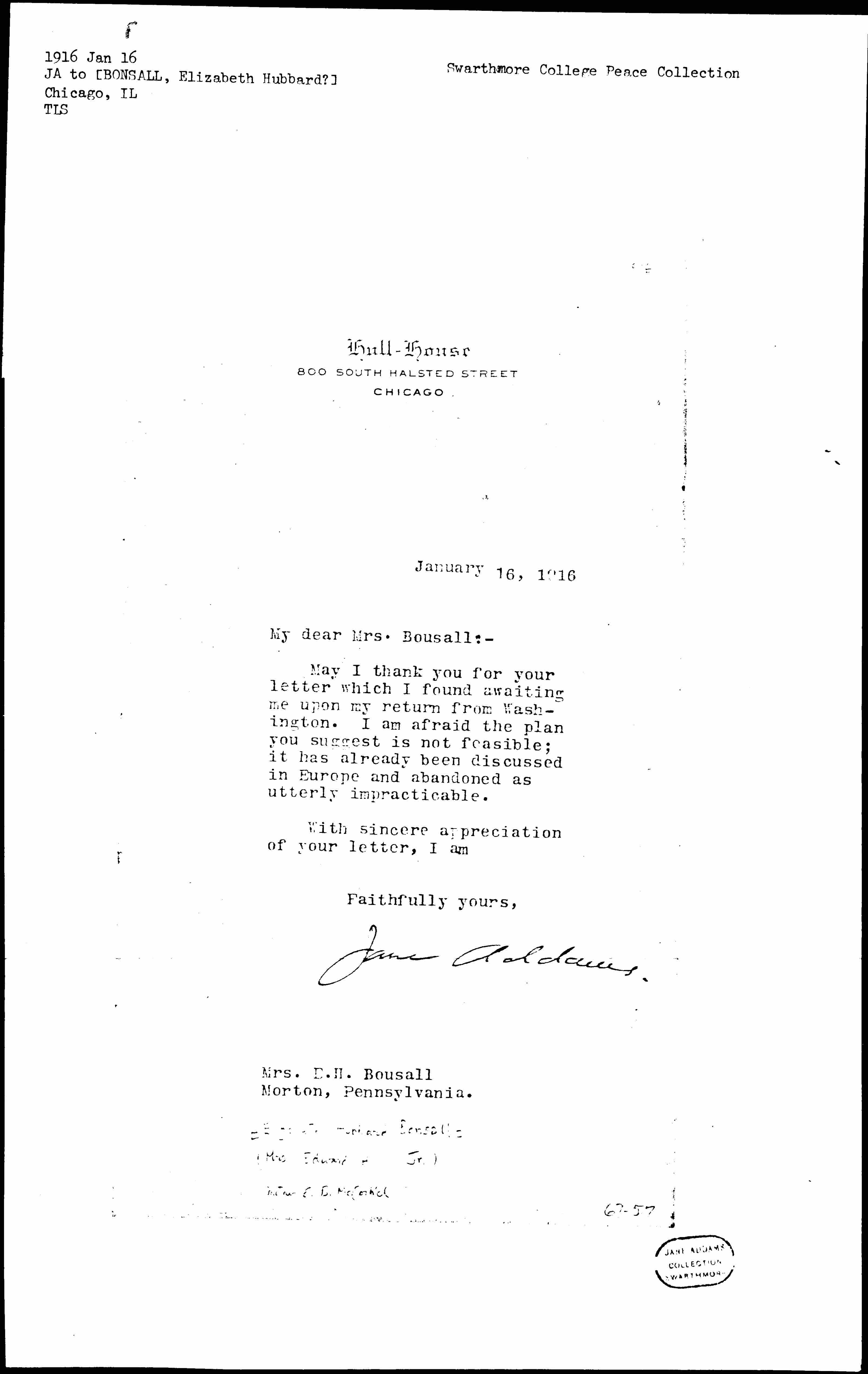 May I thank you for your letter which I found awaiting me upon my return from Washington. I am afraid the plan you suggest is not feasible; it has already been discussed in Europe and abandoned as utterly impracticable.
