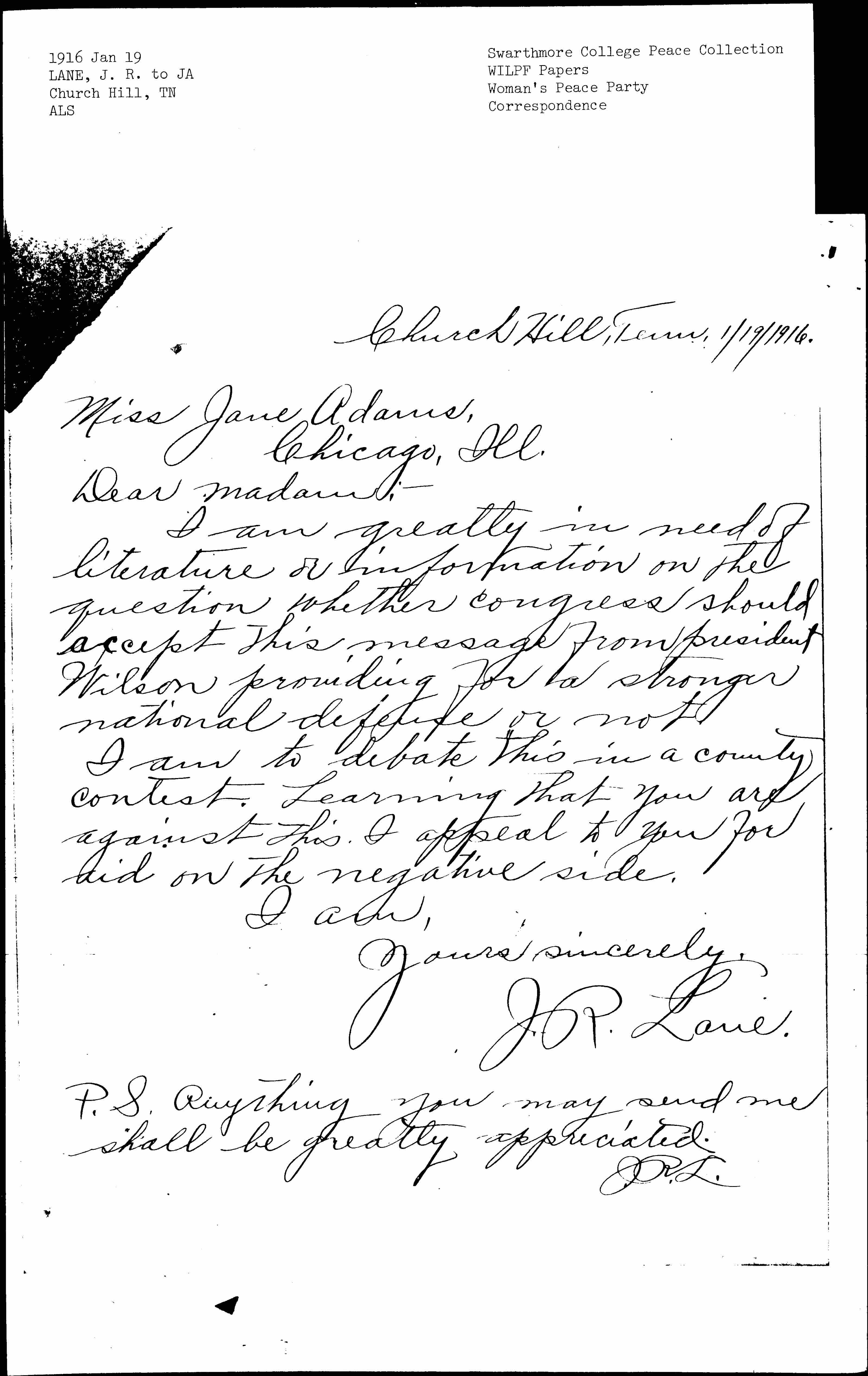 P.S. Anything you may send me shall be greatly appreciated.