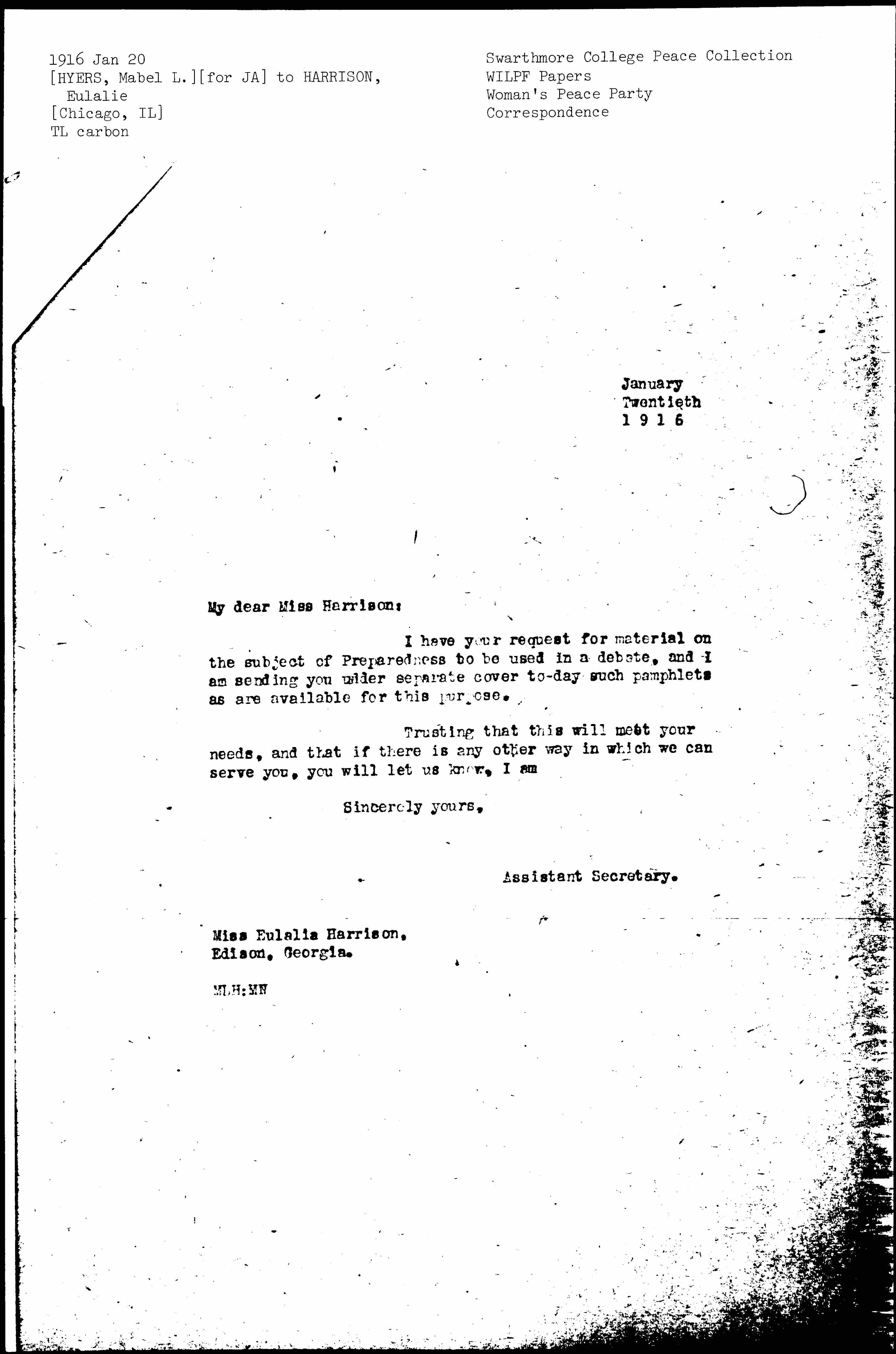My dear Miss Harrison:
