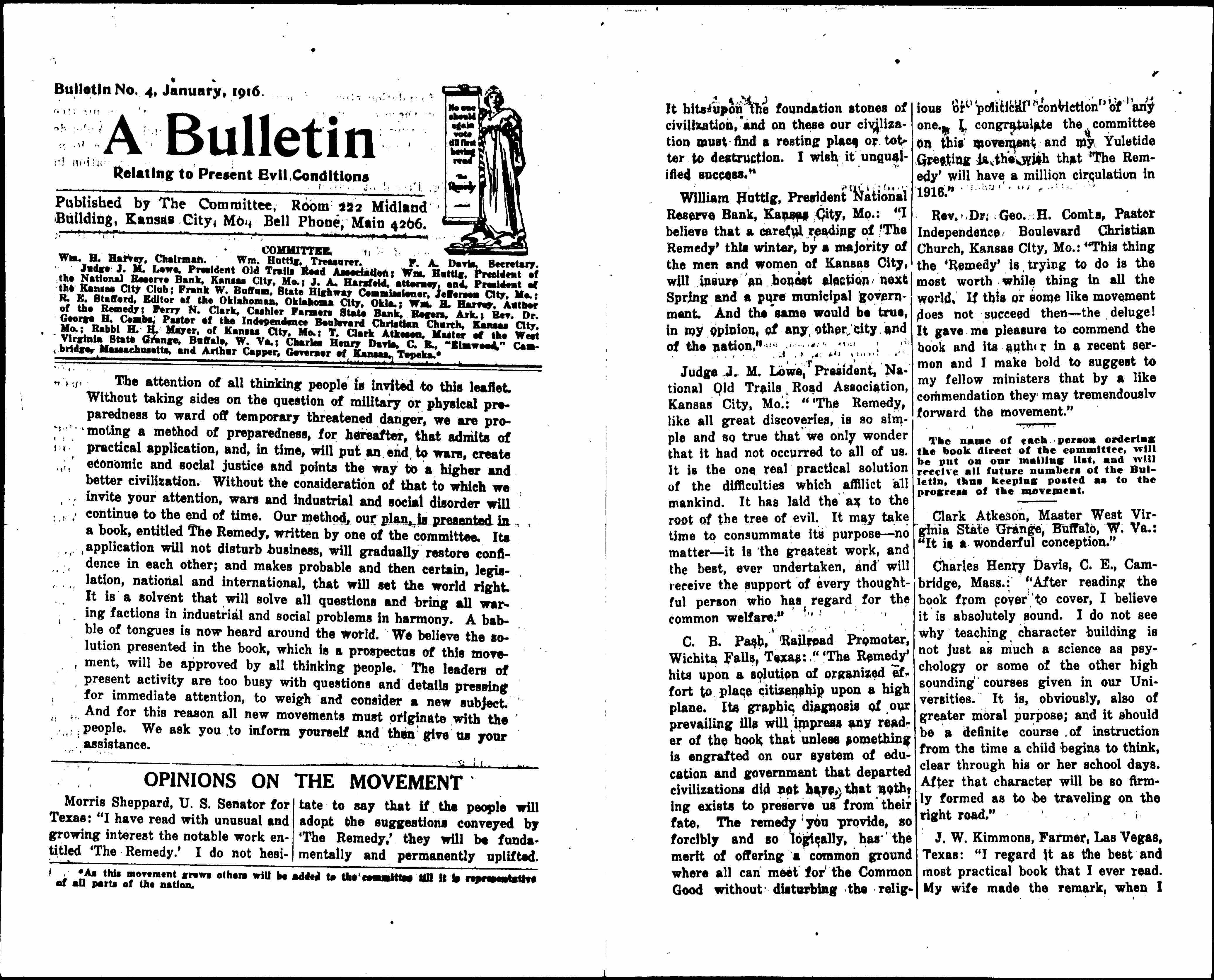 Bulletin No. 4, January, 1916 [image: No one should again vote tll first having read The Remedy]