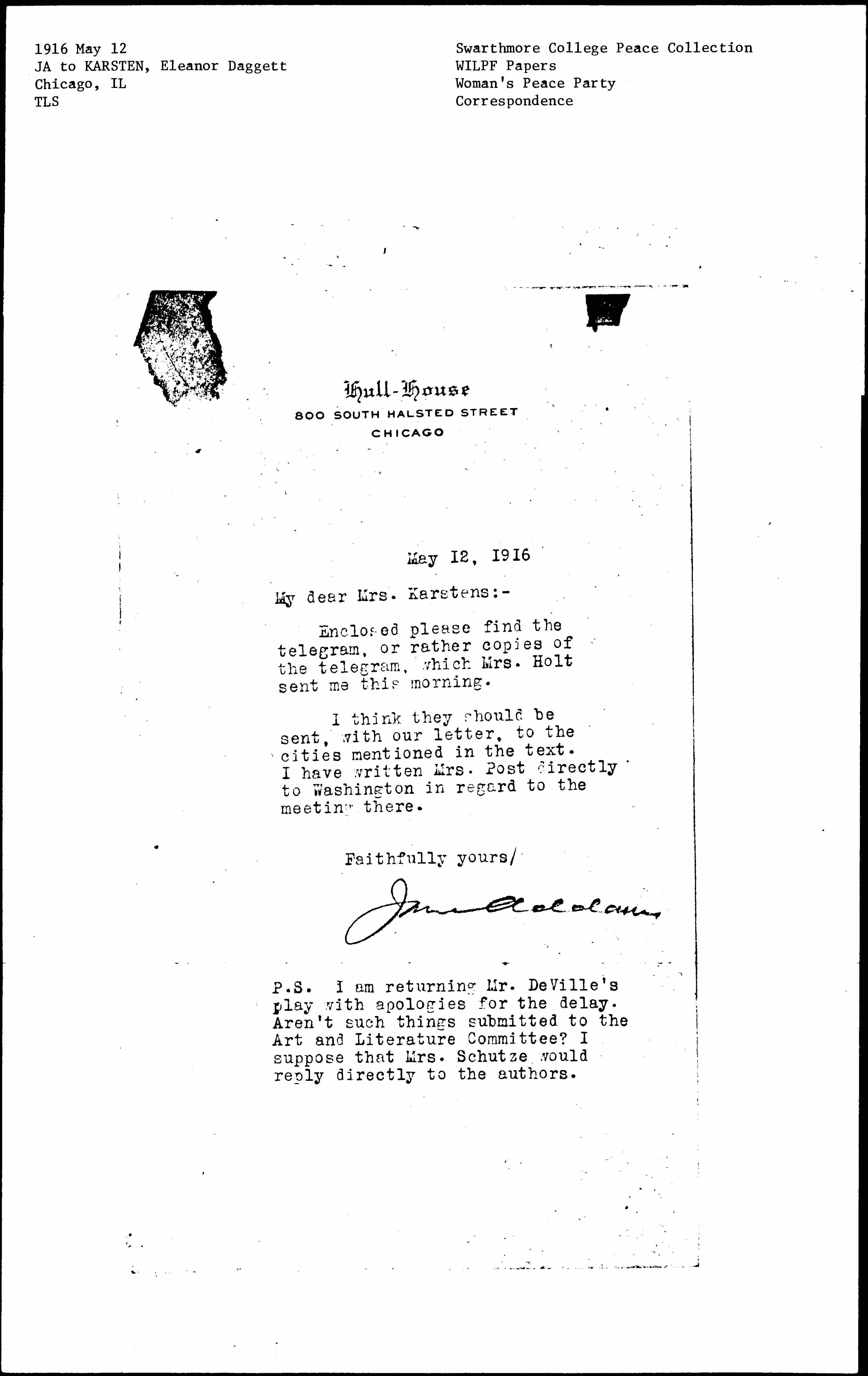 Jane Addams [signed]