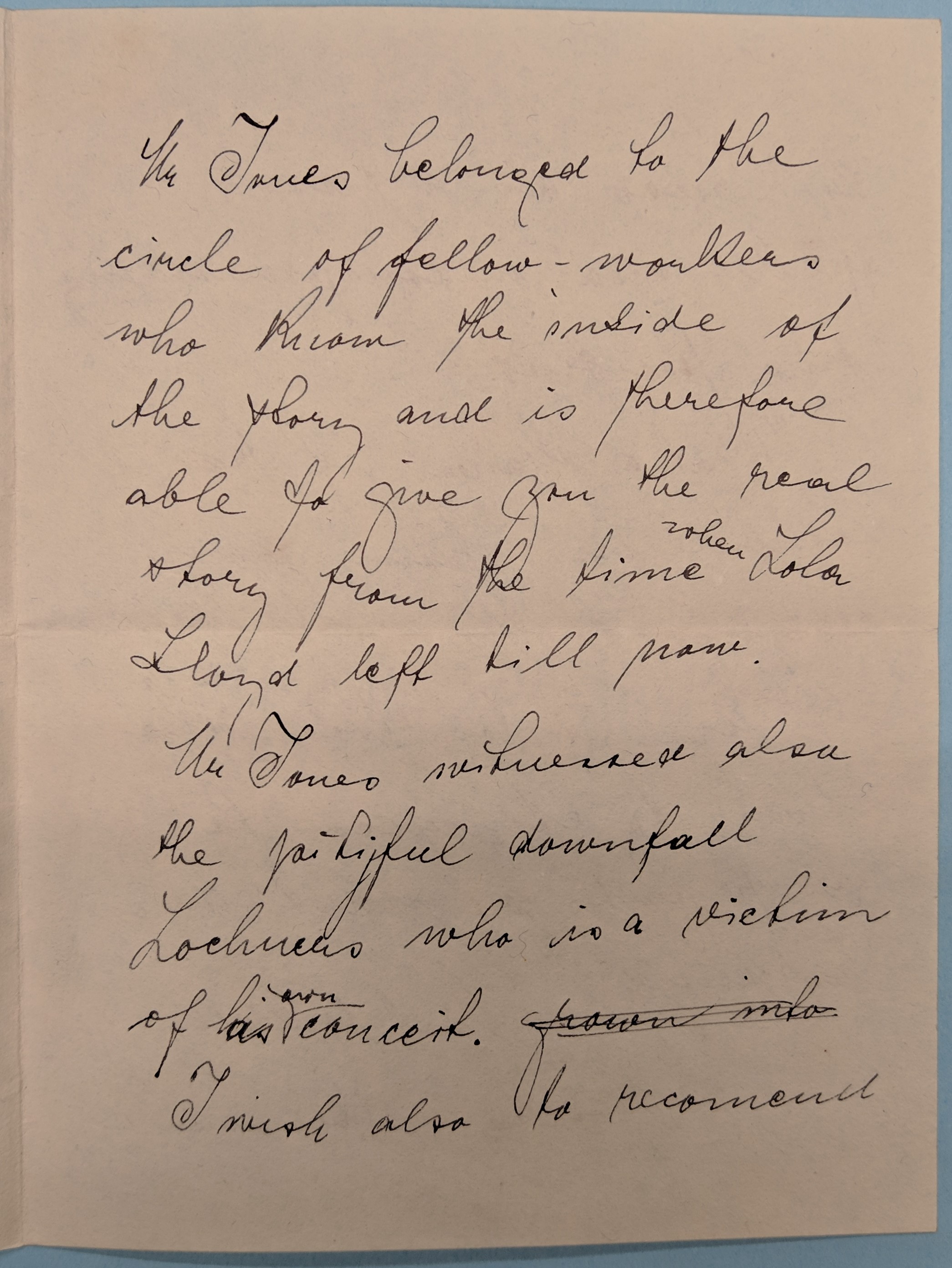 Mr Jones belonged to the circle of fellow-workers who know the inside of the story and is therefore able to give you the real story from the time <when> Lola Lloyd left till now.