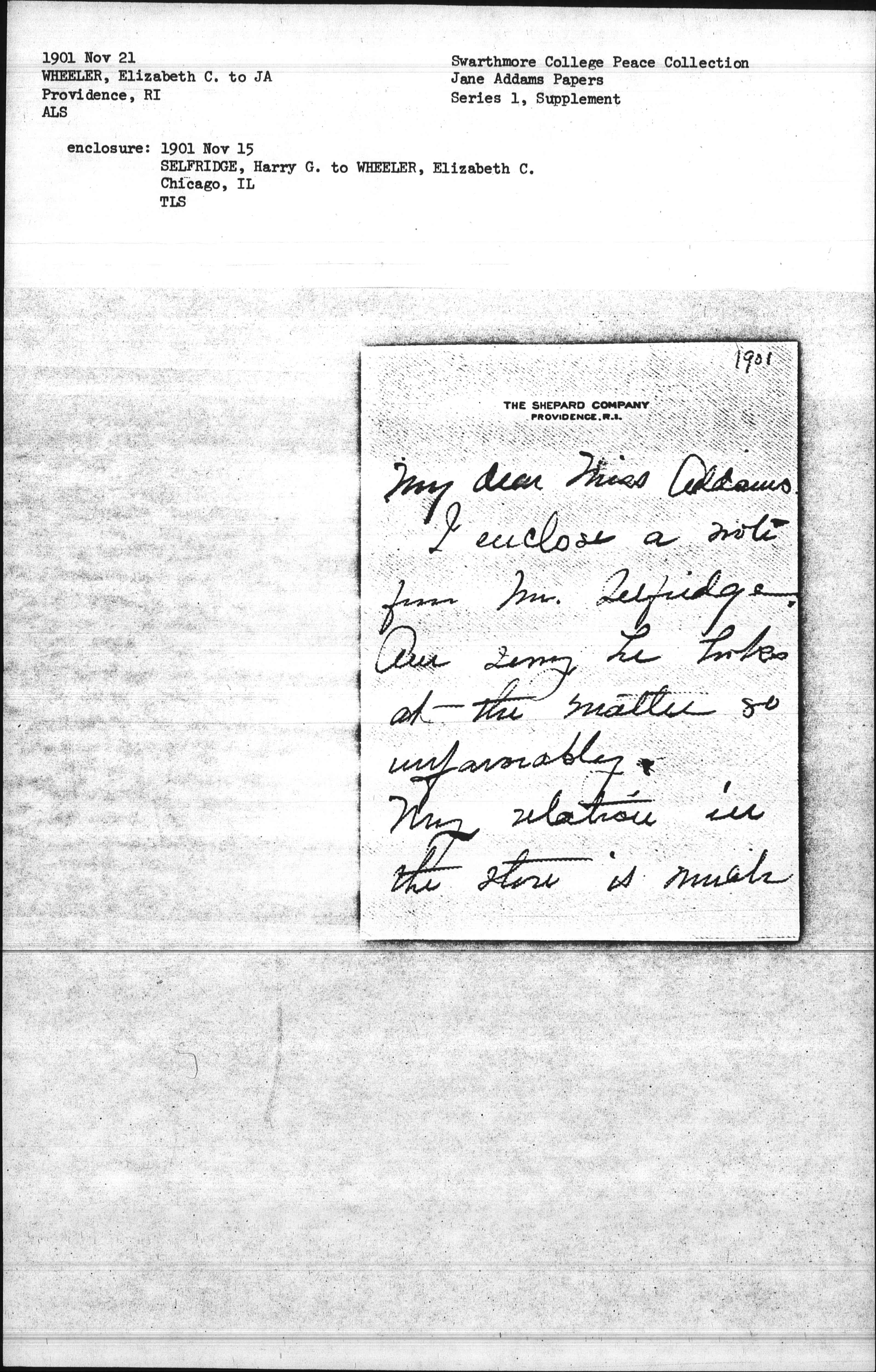 I enclose a note from Mr. Selfridge. Am sorry he looks at the matter so unfavorably.