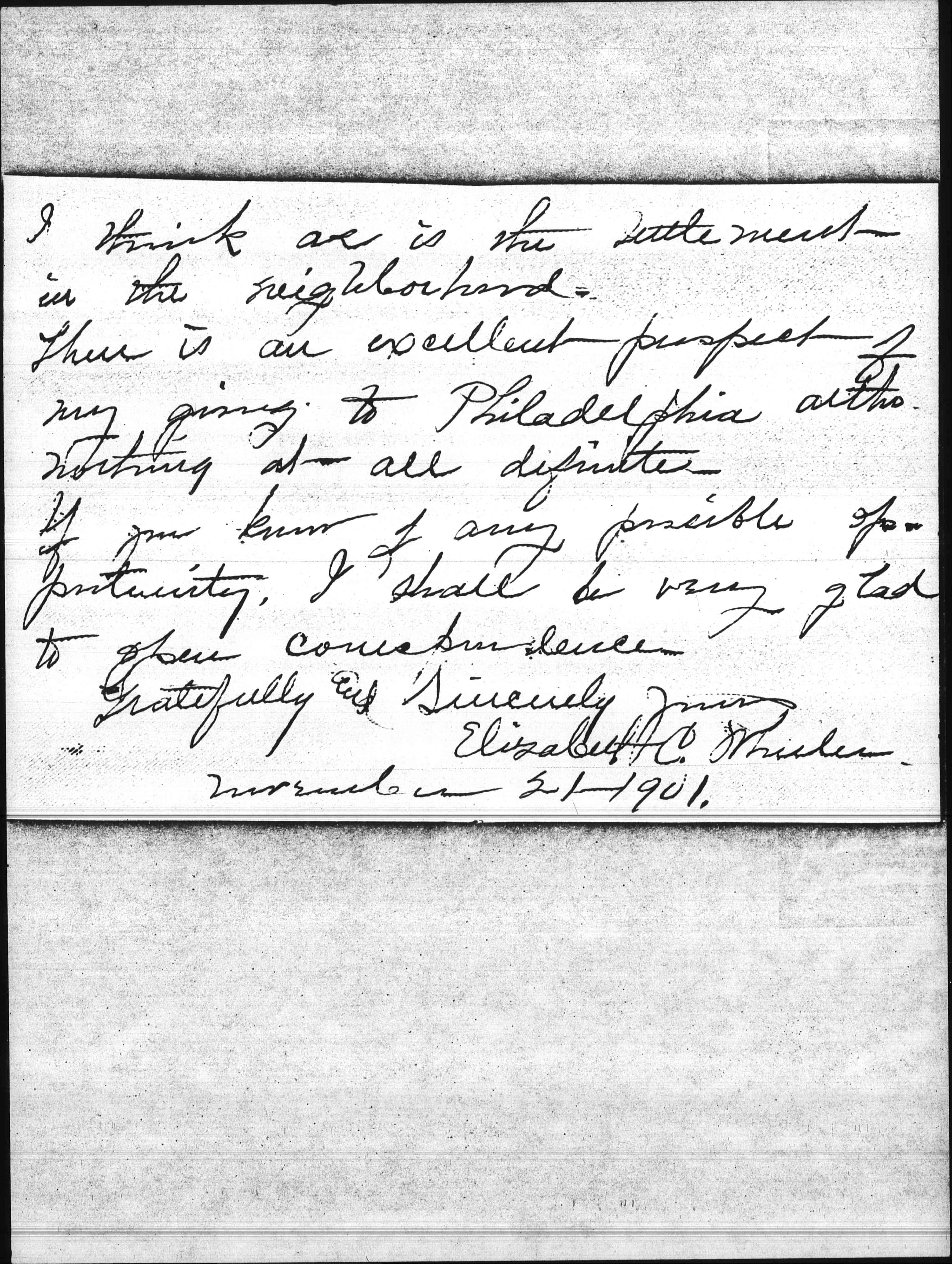 There is an excellent prospect of my [going] to Philadelphia [although] nothing at all definite.
