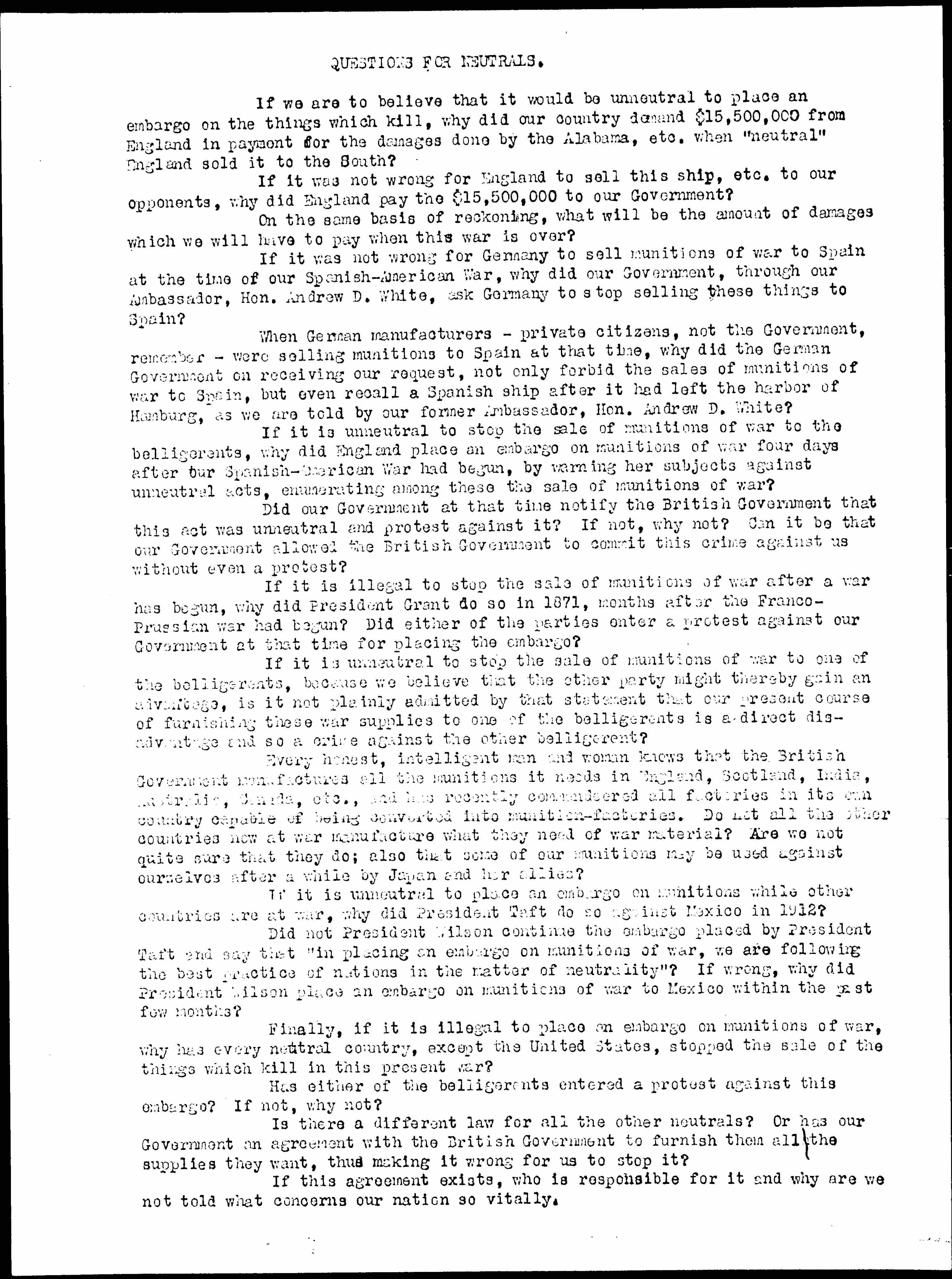 QUESTIONS FOR NEUTRALS.