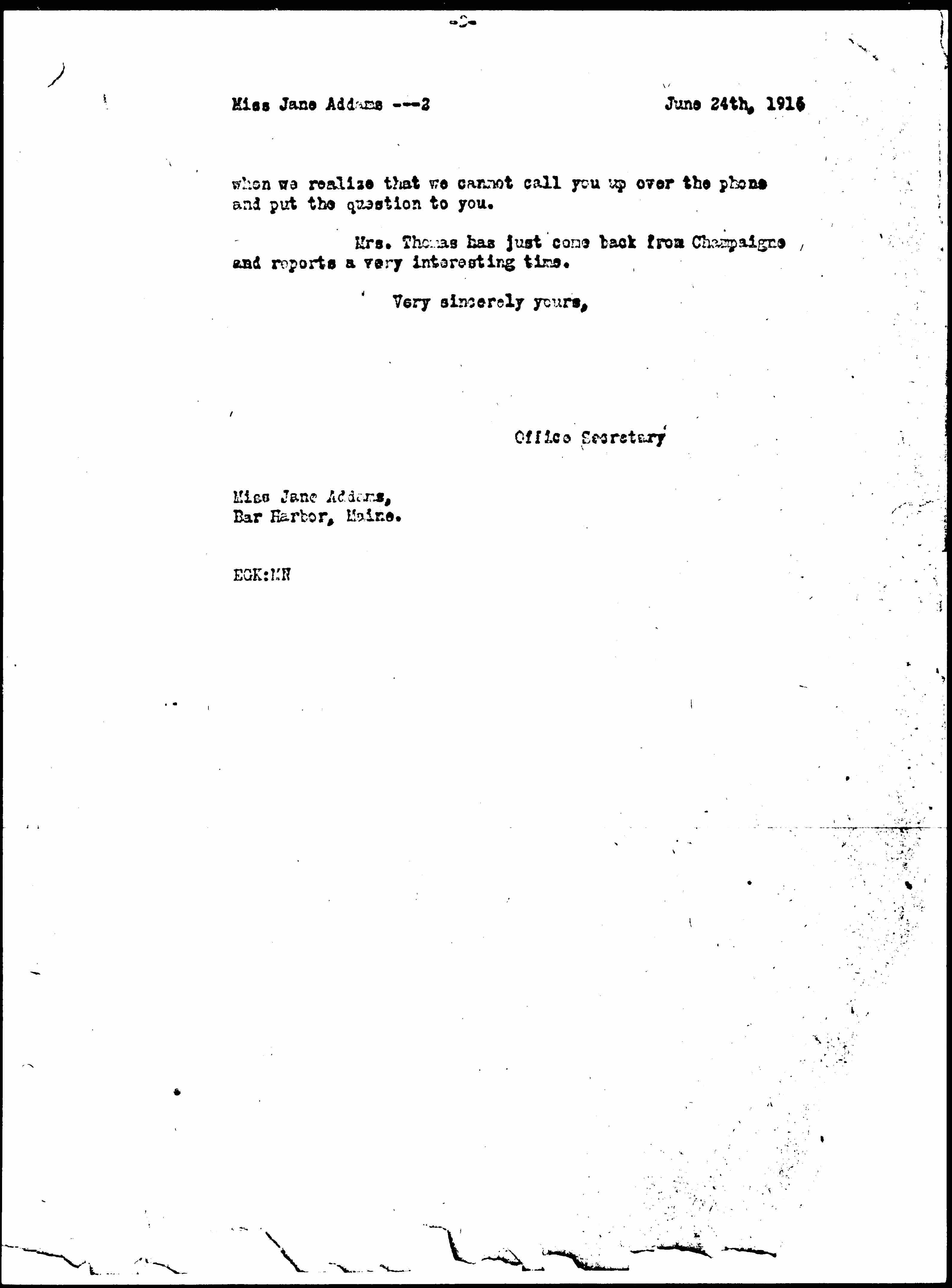 Mrs. Thomas has just come back from [Champaign] and reports a very interesting time.