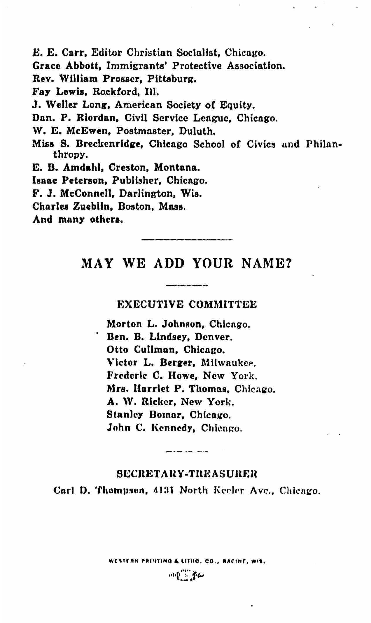 E. E. Carr, Editor Christian Socialist, Chicago.