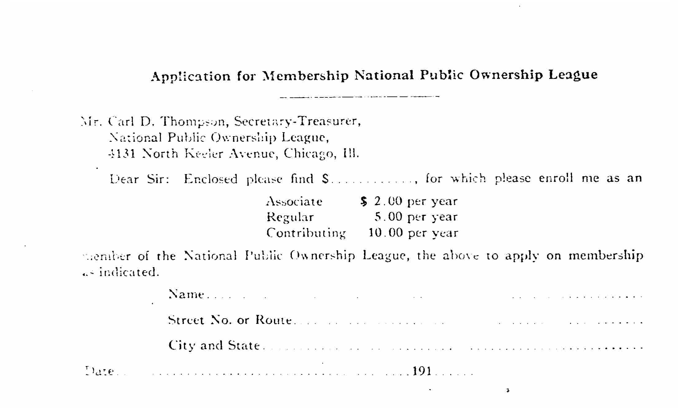 Member of the National Public Ownership League, the above to apply on membership as indicated.
