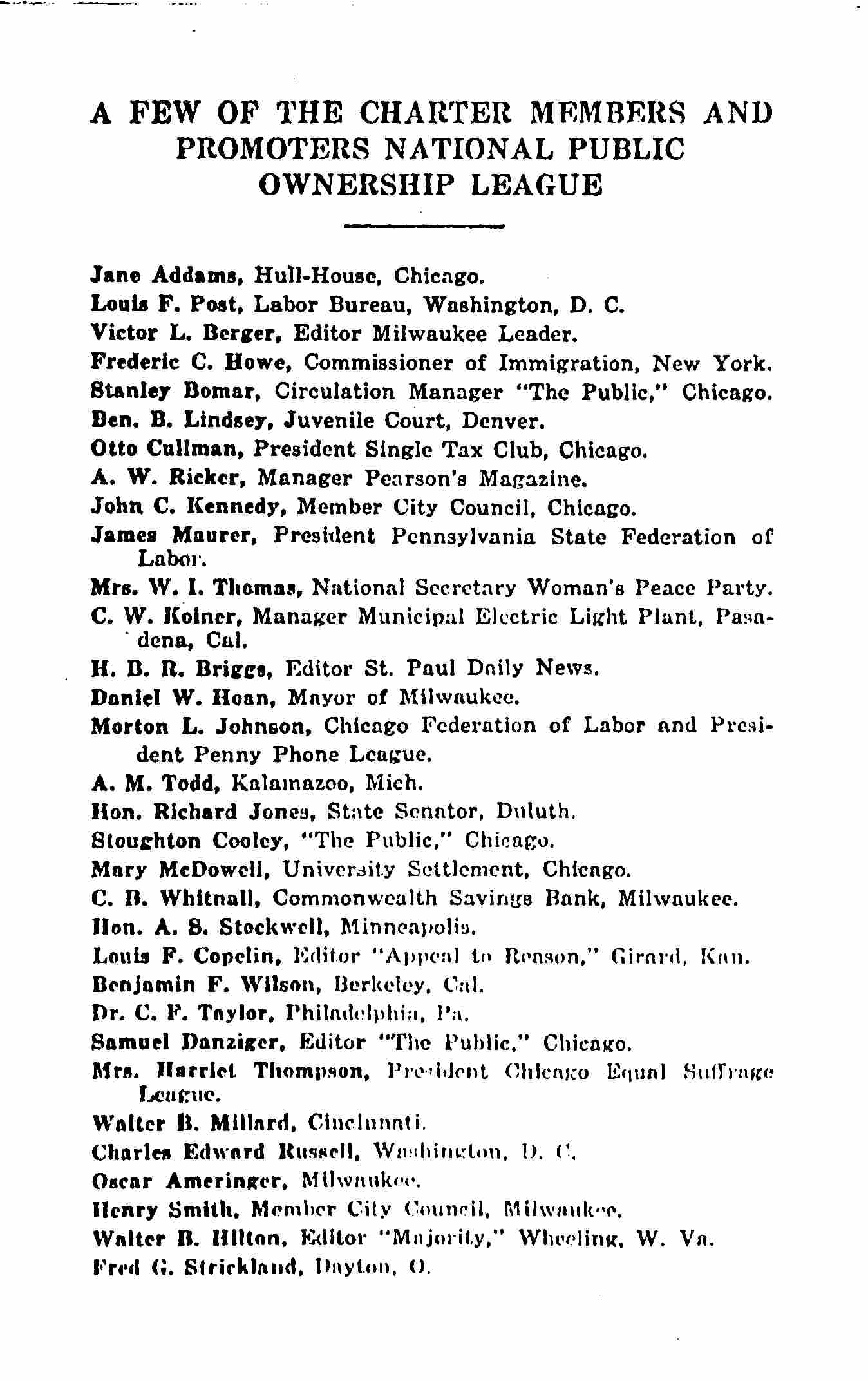 A FEW OF THE CHARTER MEMBERS AND PROMOTERS NATIONAL PUBLIC OWNERSHIP LEAGUE