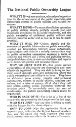 WHAT IT WILL DO -- Collect, classify and disseminate all possible information on public ownership; conduct an Information Service; assist individuals, organizations and cities in a strictly non-partisan way in public ownership campaigns; organize a corps of speakers and writers and a press and publicity service, and publish from time to time such bulletins and reports as its funds will permit and occasion require.