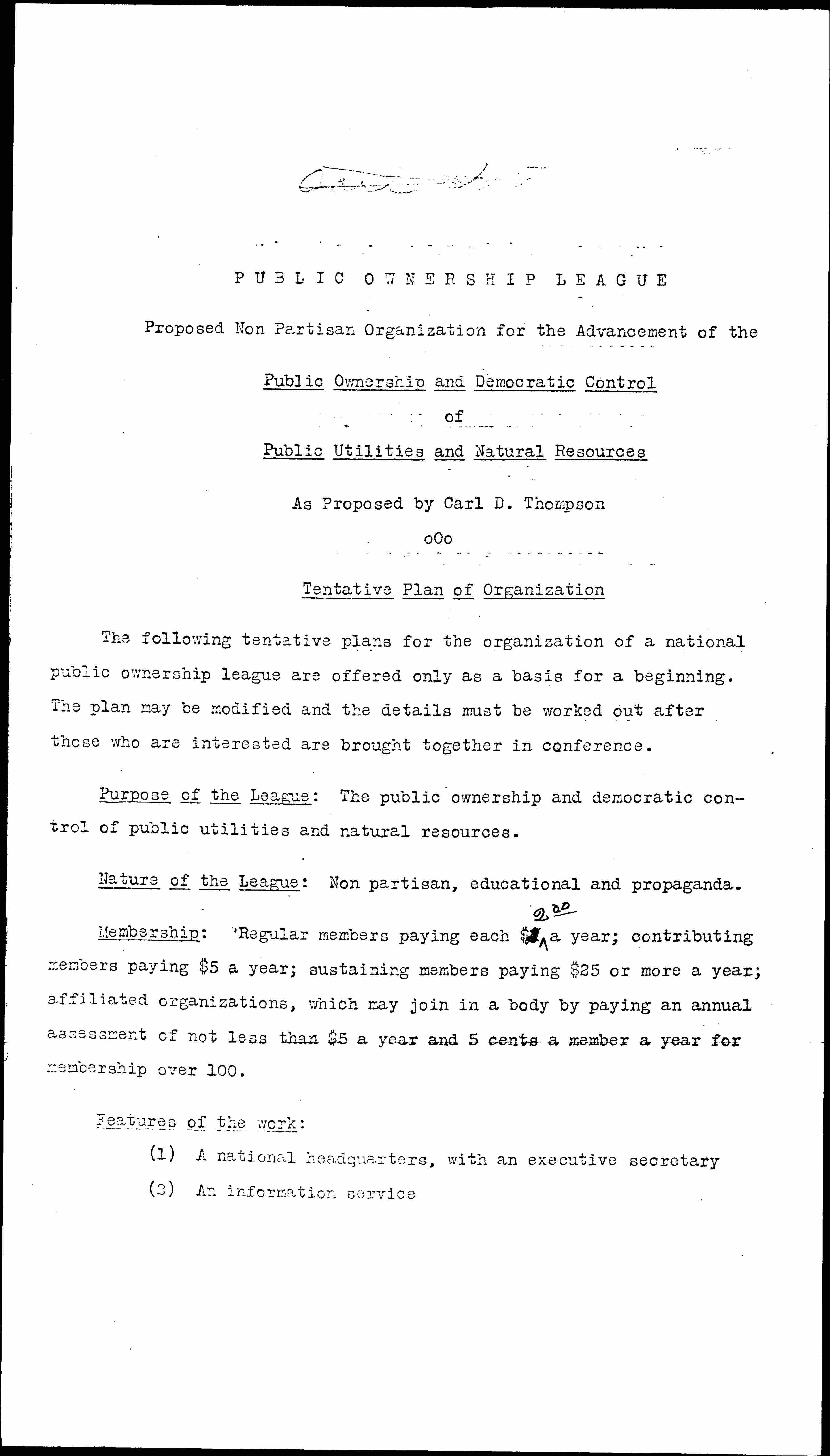Purpose of the League: The public ownership and democratic control of public utilities and natural resources.