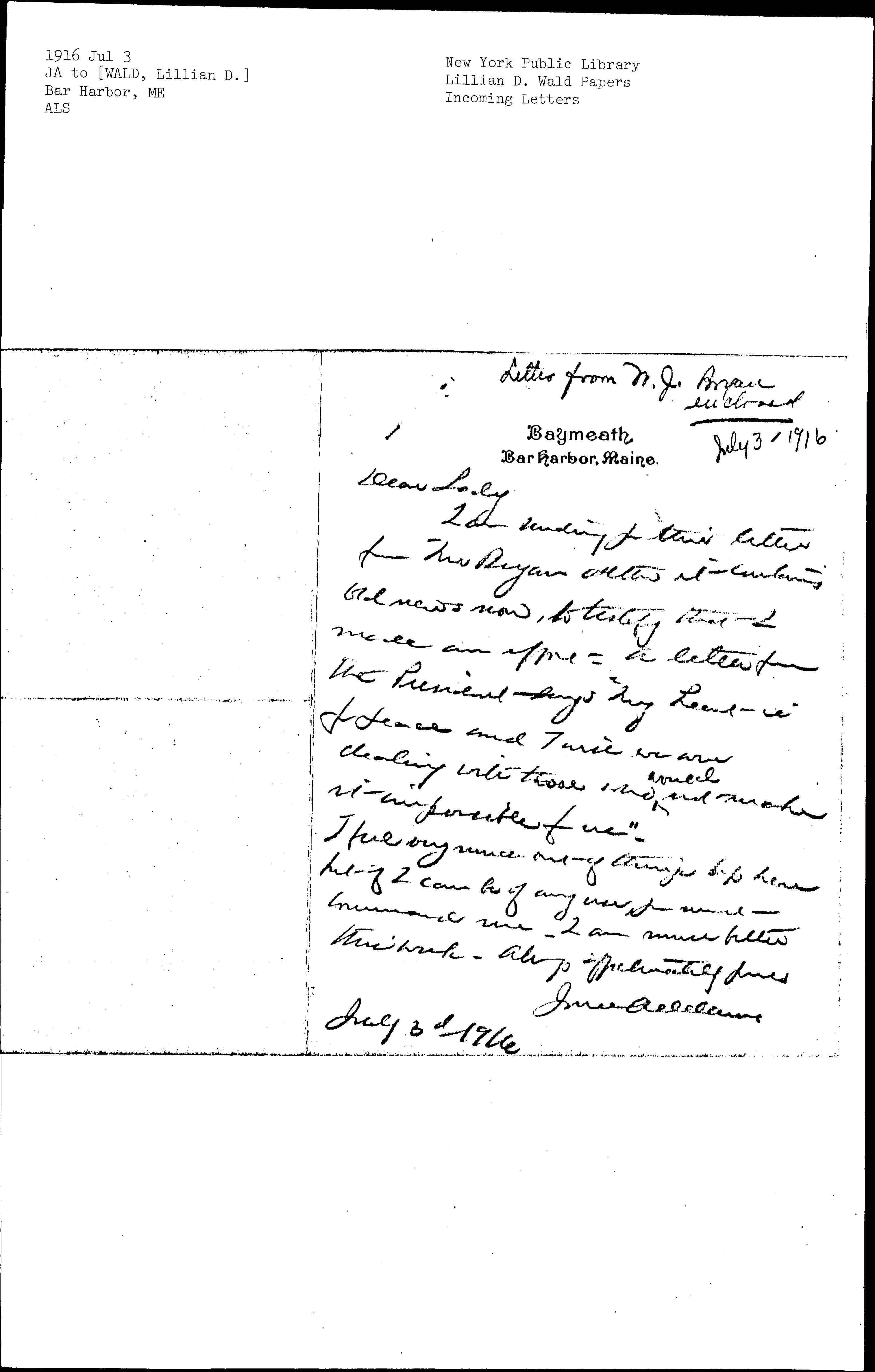 I am sending you this letter from Mr Bryan [although] it contains old news now, to testify that I made an effort. A letter from the President says "my heart is for peace and I wish we were dealing with those who <would> not make it impossible for us".